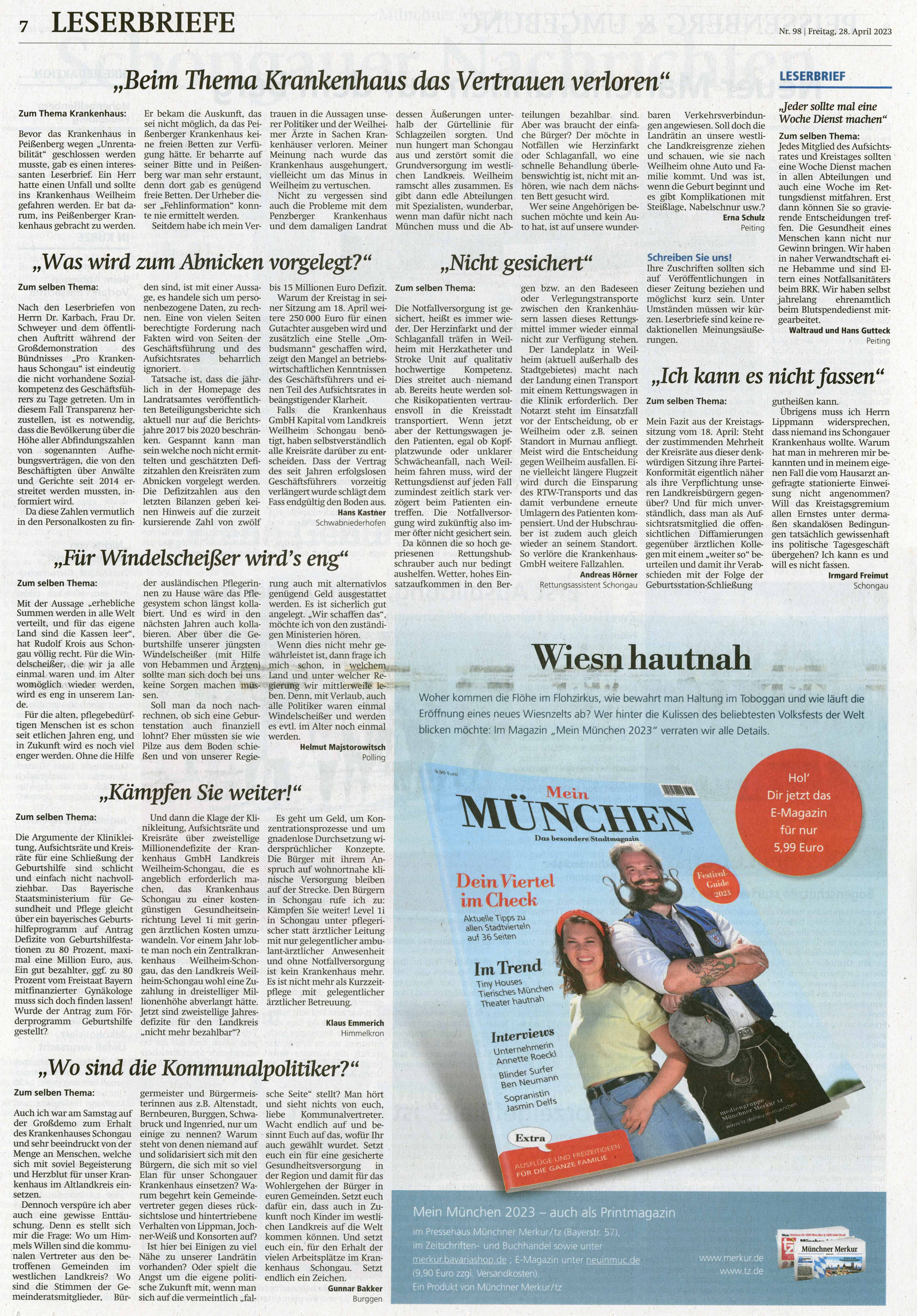 Der gebürtige Schongauer Kabarettist Helmut Schleich hat am 20. April einen Beitrag zu "Kranken Häusern" ausgestrahlt: "Was würden Sie sagen? Kann ein Krankenhaus pleitegehen? Der Habeck hätte darauf eine einfache Antwort. Nein. Das Krankenhaus ist nicht insolvent, es behandelt nur keine Patienten mehr."