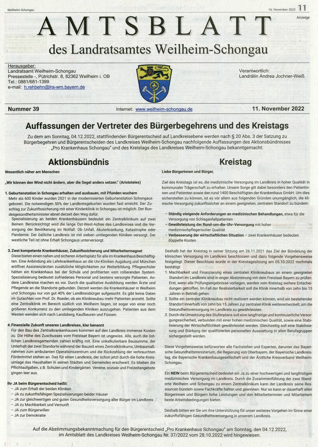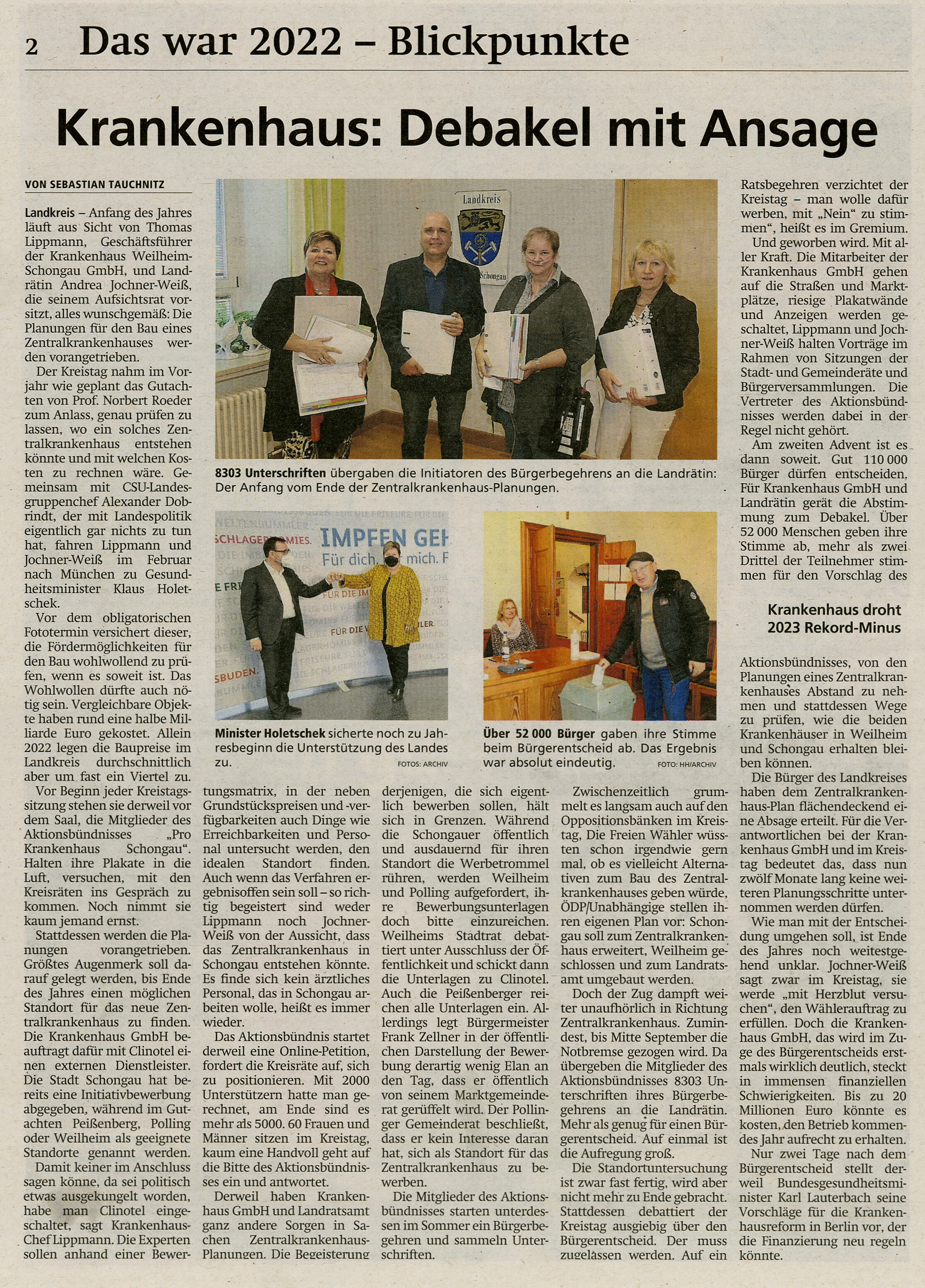 Im Anhang schicken wir Ihnen noch den lesenswerten Artikel von Sebastian Tauchnitz, der in einer Sonderveröffentlichung der Schongauer Nachrichten erschienen ist. Titel: "Krankenhaus - Debakel mit Ansage"