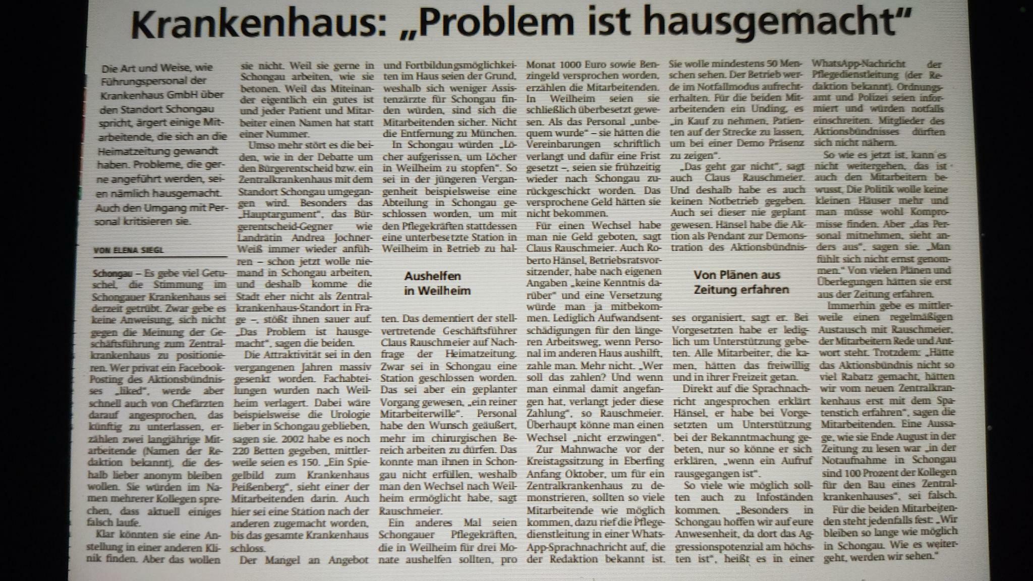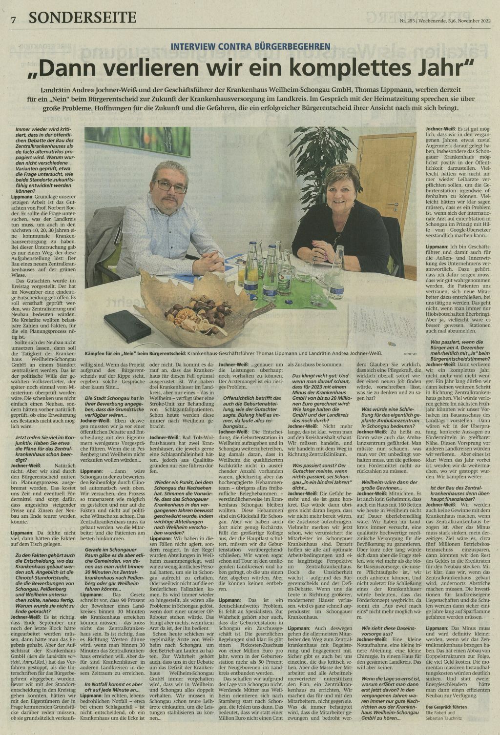 Gleich kommt noch eine zweite Nachricht an Sie, Inhalt: Contra-Argumente von Landrätin Jochner-Weiß und Krankenhaus GmbH-Geschäftsführer Thomas Lippmann.
