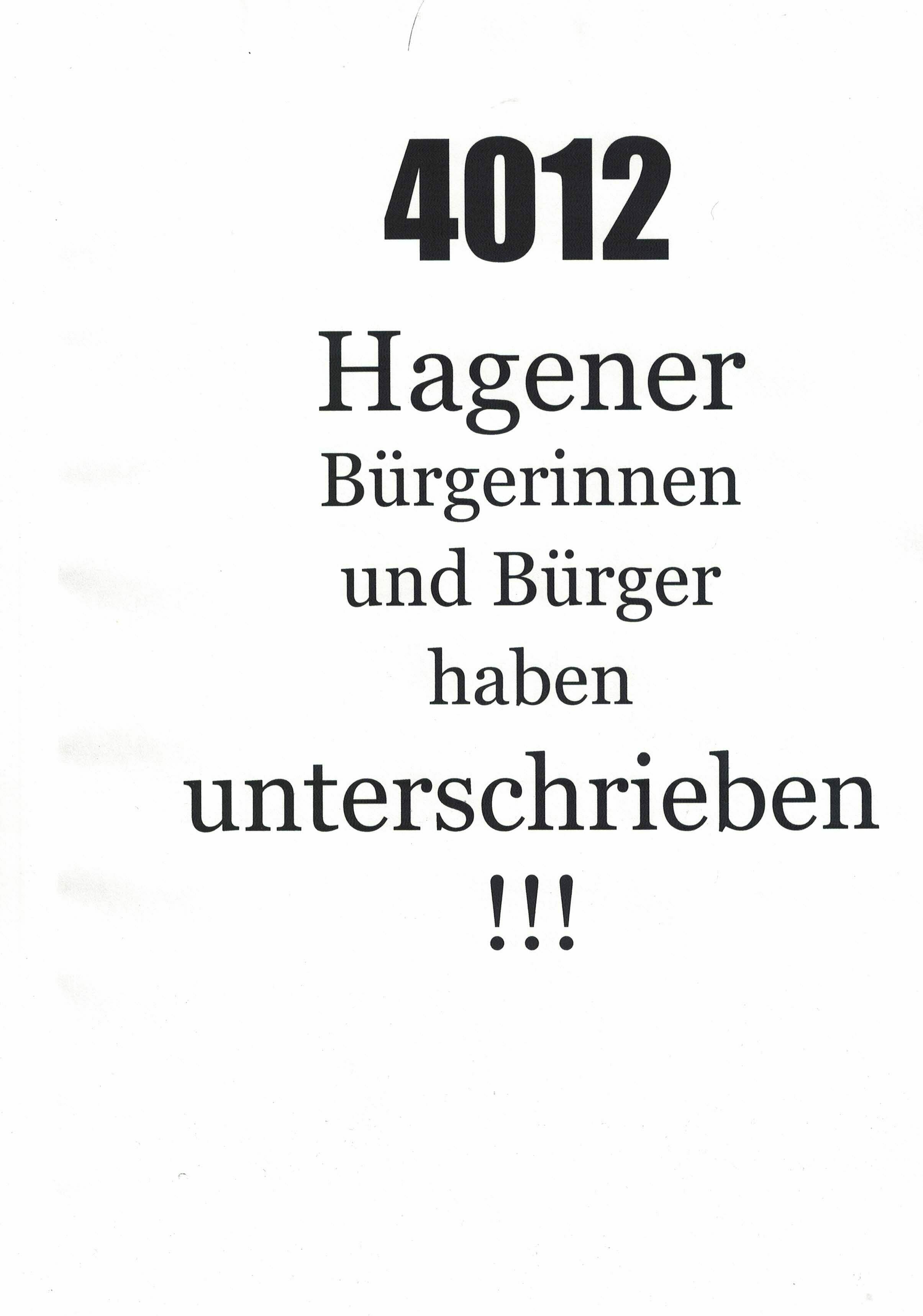 Wir dürfen sehr gespannt sein, ob Oberbürgermeister und Rat der Stadt Hagen diese Zahl ignorieren werden. Und wir sind sogar sehr gespannt.