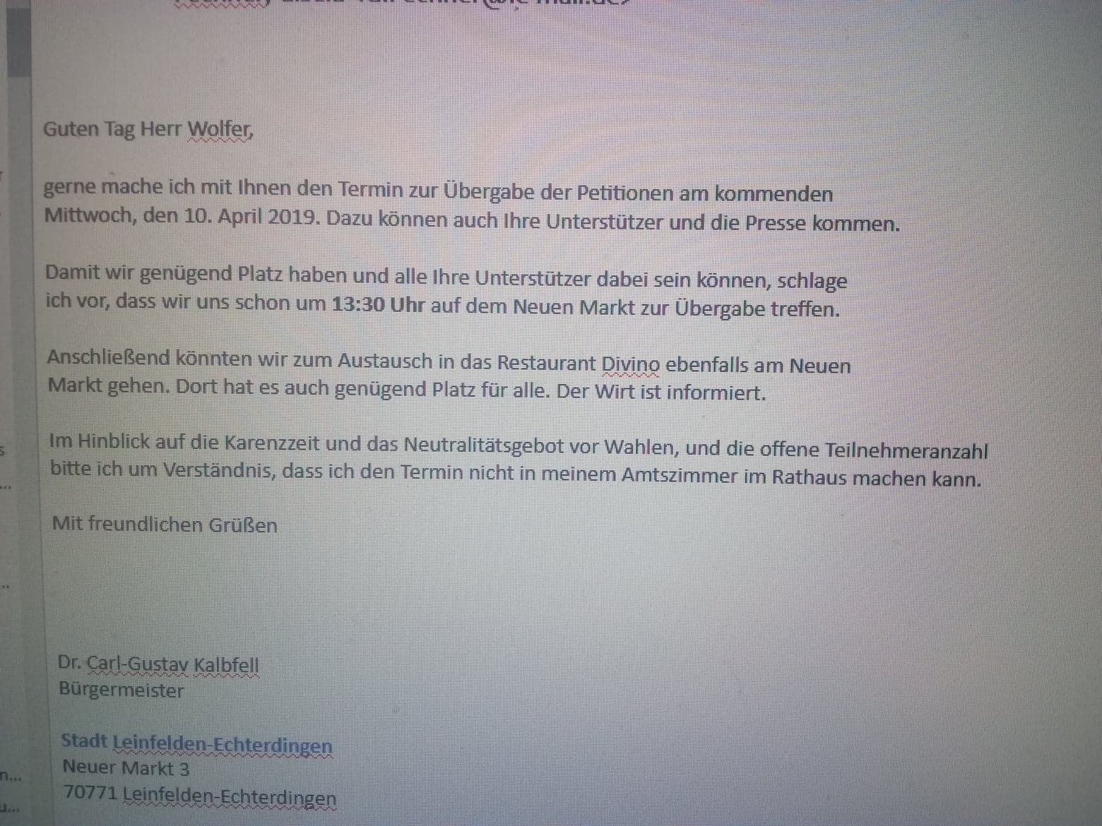 Unterschriften zum Zeitpunkt der Änderung: 96 (91 in Leinfelden-Echterdingen)
