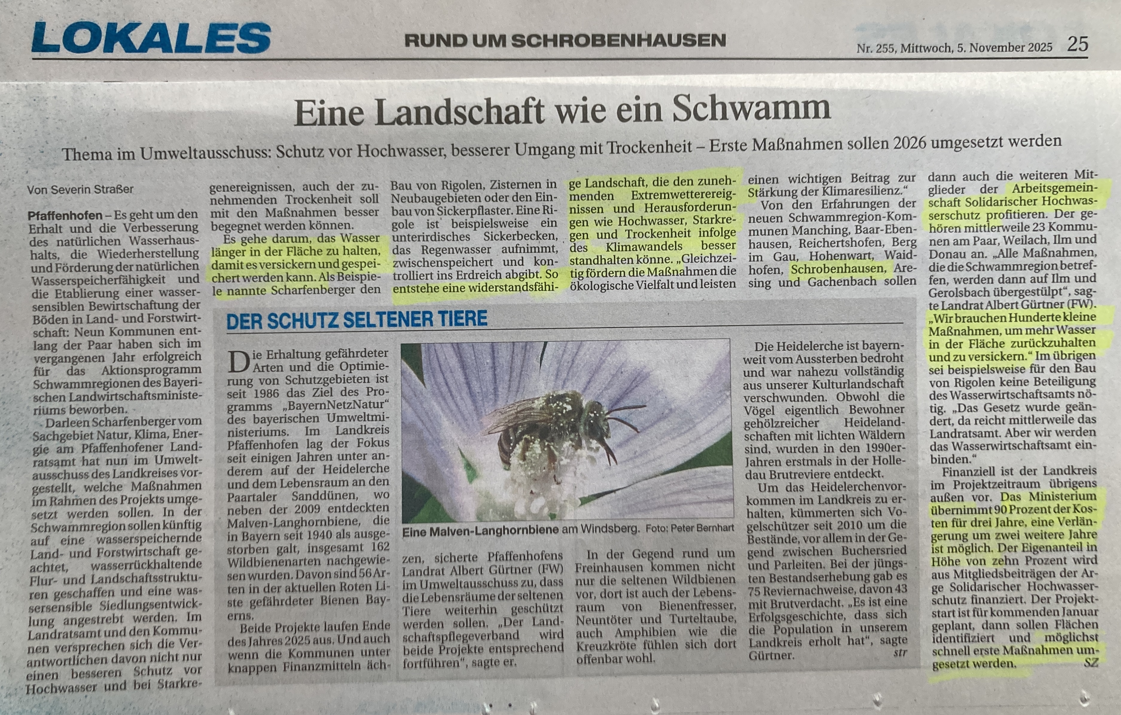 -Bewerbung als Teil einer neuen Schwammregion erfolgreich, Schrobenhausen ist Mitglied und soll nun möglichst schnell kleine Massnahmen selbst durchführen, Start Januar 2026