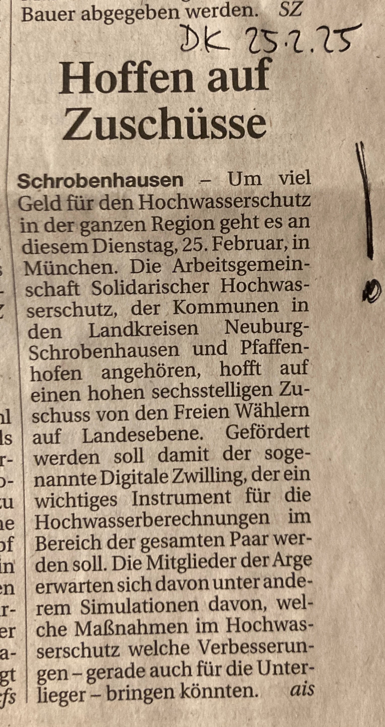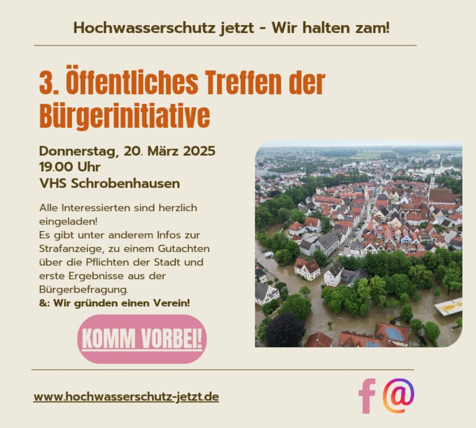 Die Bürgerinitiative Hochwasserschutz jetzt, wir haltn zsam! trifft sich weiterhin, schon im März wird es eine große öffentliche Veranstaltung geben mit den neuesten Zahlen, Daten, Fakten.