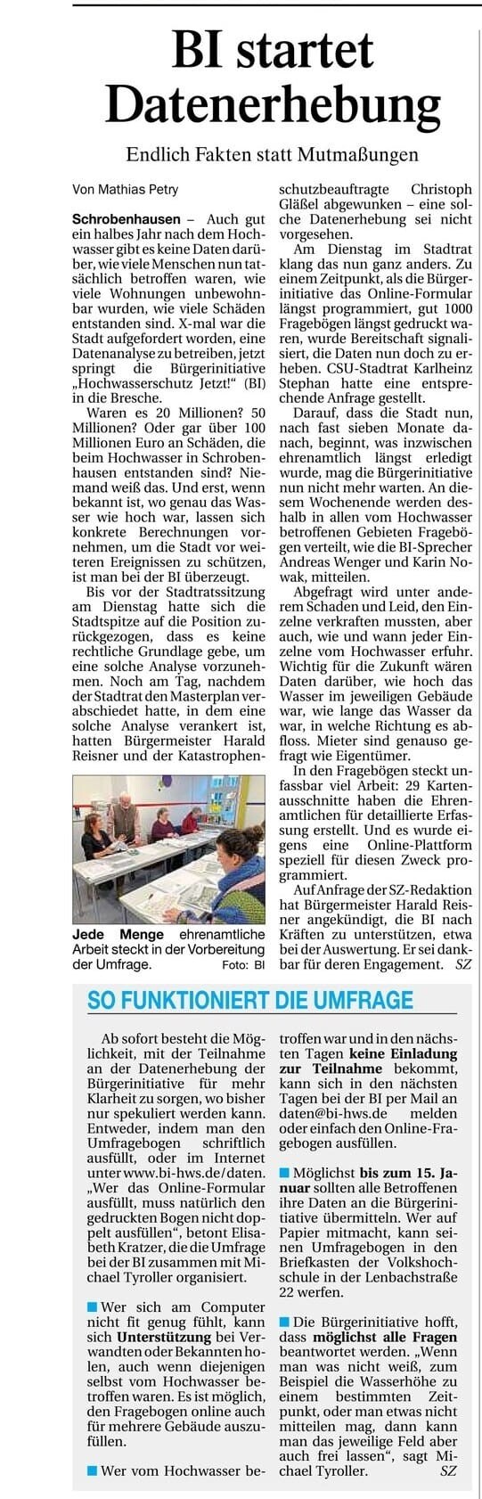 am morgigen Samstag startet die Bürgerinitiative ihre große Bürgerbefragung, knapp 1000 Haushalte werden einen Umschlag mit Fragebogen, Kartenausschnitt ihres Stadtgebietes und einen ausführlichen Begleitbrief in ihrem Briefkasten finden.