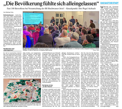 Die zweite große öffentliche Veranstaltung der Bürgerinitiative Hochwasserschutz jetzt! Wir haltn zsam war wieder sehr gut besucht, ungefähr 100 Personen hörten gespannt neue Erkenntnisse und sahen sich Statistiken an, die die Vortragenden Elisabeth Kratzer, Andreas Wenger und Michael Tyroller vorstellten.