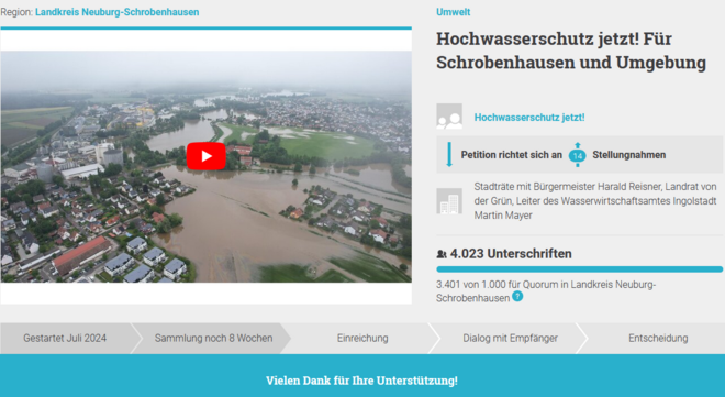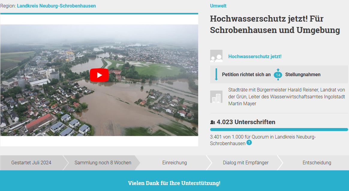 Um ein vielfaches wurde das Mindestquorum von 1000 gültigen Unterschriften übertroffen! Am Ende waren 4023 Menschen bereit, mit ihrem Namen die Forderungen an Landrat, Bürgermeister und Wasserwirtschaftsamt zu bezeugen.