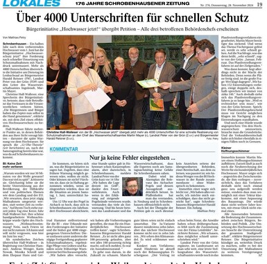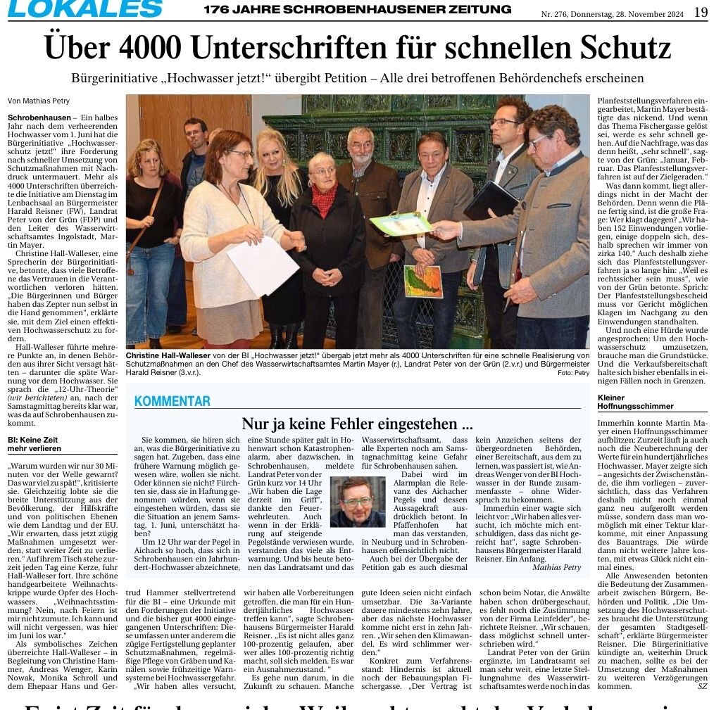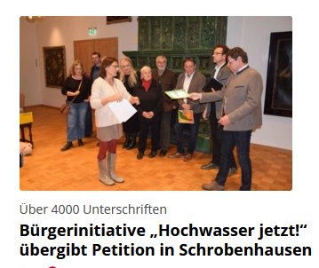 In feierlicher Atmosphäre im Lenbachsaal des Schrobenhausener Rathauses konnte die Bürgerinitiative Hochwasserschutz-jetzt, wir haltn zsam! nun endlich ihre Petition übergeben.