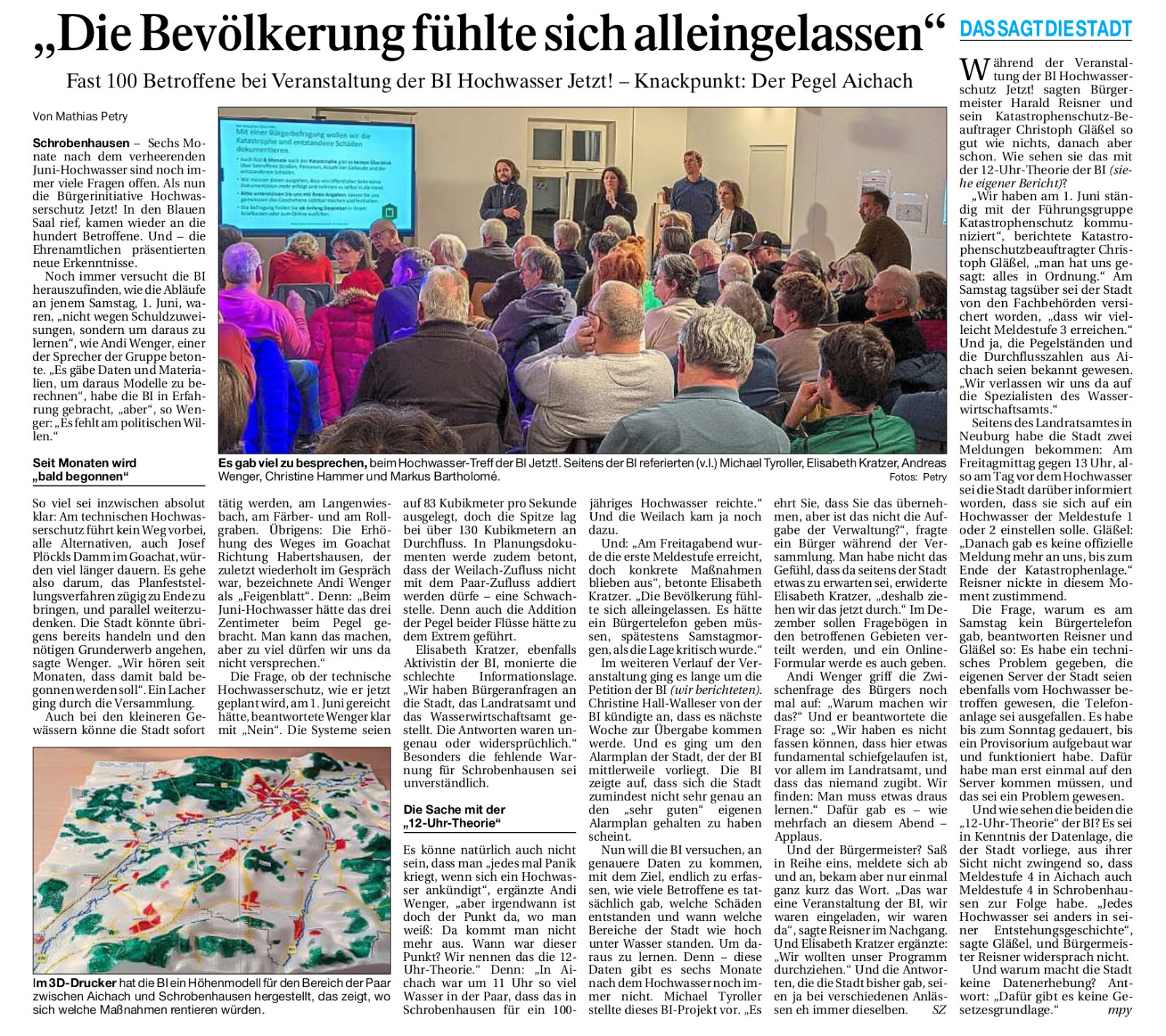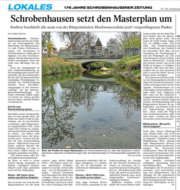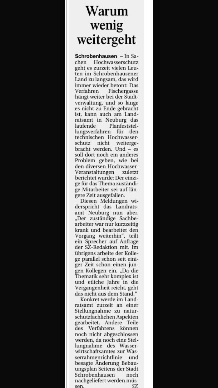 Und seit 6 Monaten gelingt es der Stadtverwaltung Schrobenhausen nicht, eine einzige Änderung eines B-Planes durchzuziehen damit es weitergehen kann mit dem HW-Schutz?