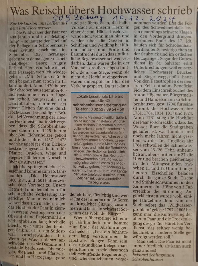 Seit 30 Jahren passiert einfach wieder einmal nichts, zumindest hören und sehen wir nichts essentiell neues zur Thematik Hochwasserschutz für Schrobenhausen an Paar und Weilach!