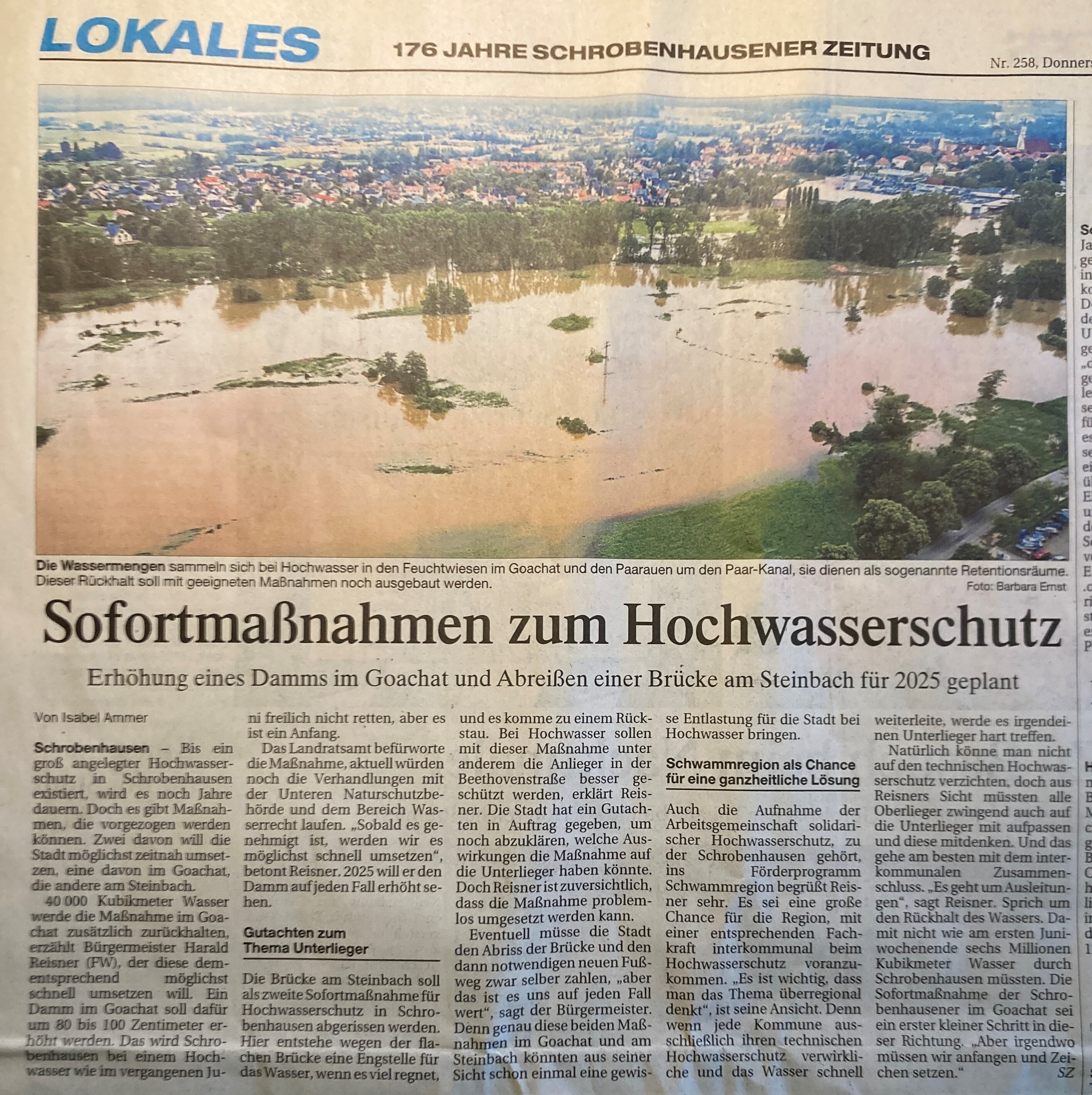 Am Beispiel der Gemeinde Baar-Ebenhausen wird deutlich, dass es auch hier wieder einmal an der Durchsetzung von schon lange geplanten Hochwasserschutzmassnahmen hakt. Im Gegenteil: Jahrzehntelang wurde fleissig gebaut und brutal versiegelt, aber nicht auf die immer kritischer werdende Situation entlang der Flüsse und Bäche geschaut. Auch heute noch wird mitten in die Auenlandschaft hineingebaut, da frage ich mich dann aber schon, welche Behörde da wohl beide Augen zugedrückt hat???