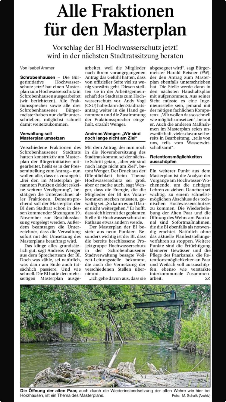 Am 20.11.2024 veranstaltet die BI eine weitere öffentliche Versammlung für die Bürgerinnen und Bürger der Stadt und der umliegenden Gemeinden an Paar und Weilach.