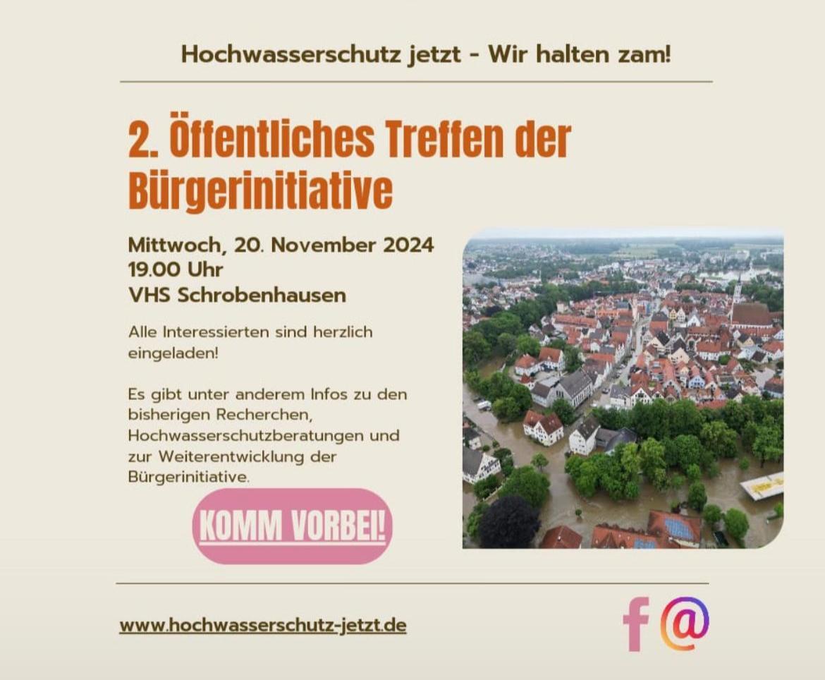 Die Bürgerinitiative HOCHWASSERSCHUTZ-JETZT-Wir haltn zsam! veranstaltet wieder ein öffentliches Treffen. Kommt vorbei und hört, was in der alles passiert ist.