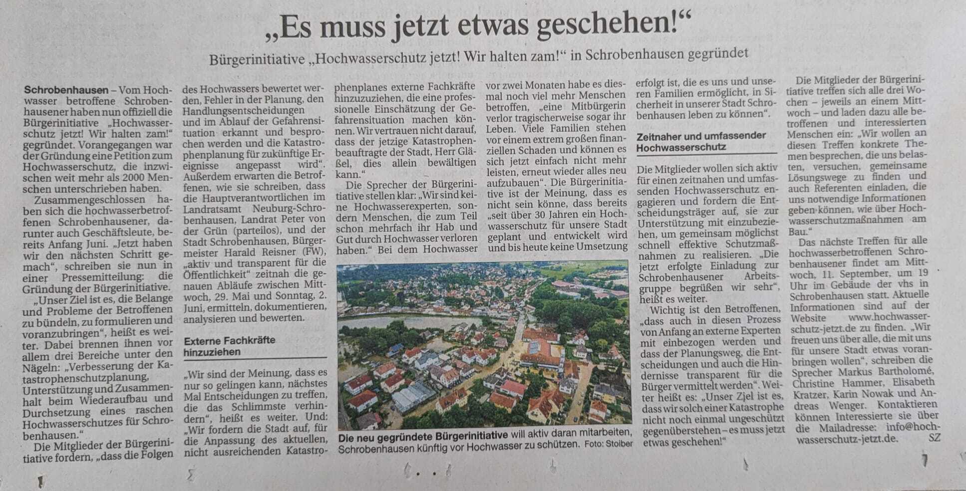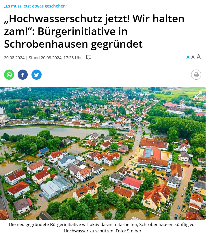 Wir wollen aktiv mitarbeiten und haben dazu eine Bürgerinitiative "Hochwasserschutz jetzt! Wir halten zusammen" gegründet.