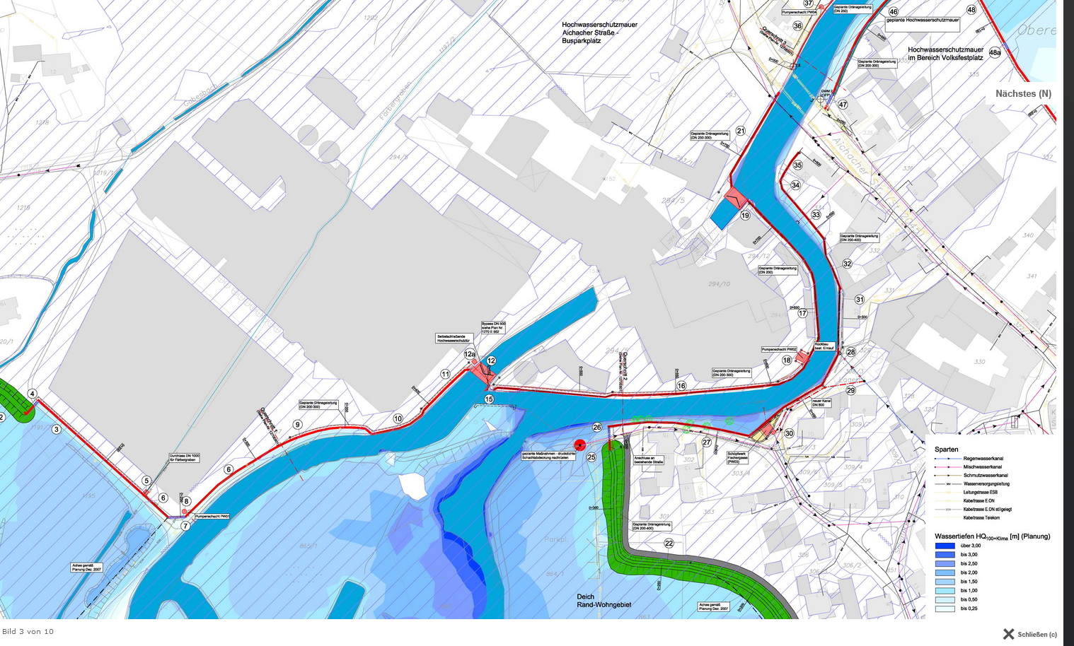 Ich zeige hier mal ein Beispiel der sehr detailiert ausgearbeiteten Planungen, die im Wasserwirtschaftsamt Ingolstadt in der Schublade liegen, zum Teil seit 2003, manches überarbeitet und wieder liegen gelassen seit 2013, nun ist Sommer 2024 und immer noch nichts passiert ausser schlimmste Verwüstungen bei hunderten Betroffenen Bürgern und Geschäftstreibenden, Trauer und Verzweiflung nach der Hochwasserkatastrophe am 1./2.6.2024