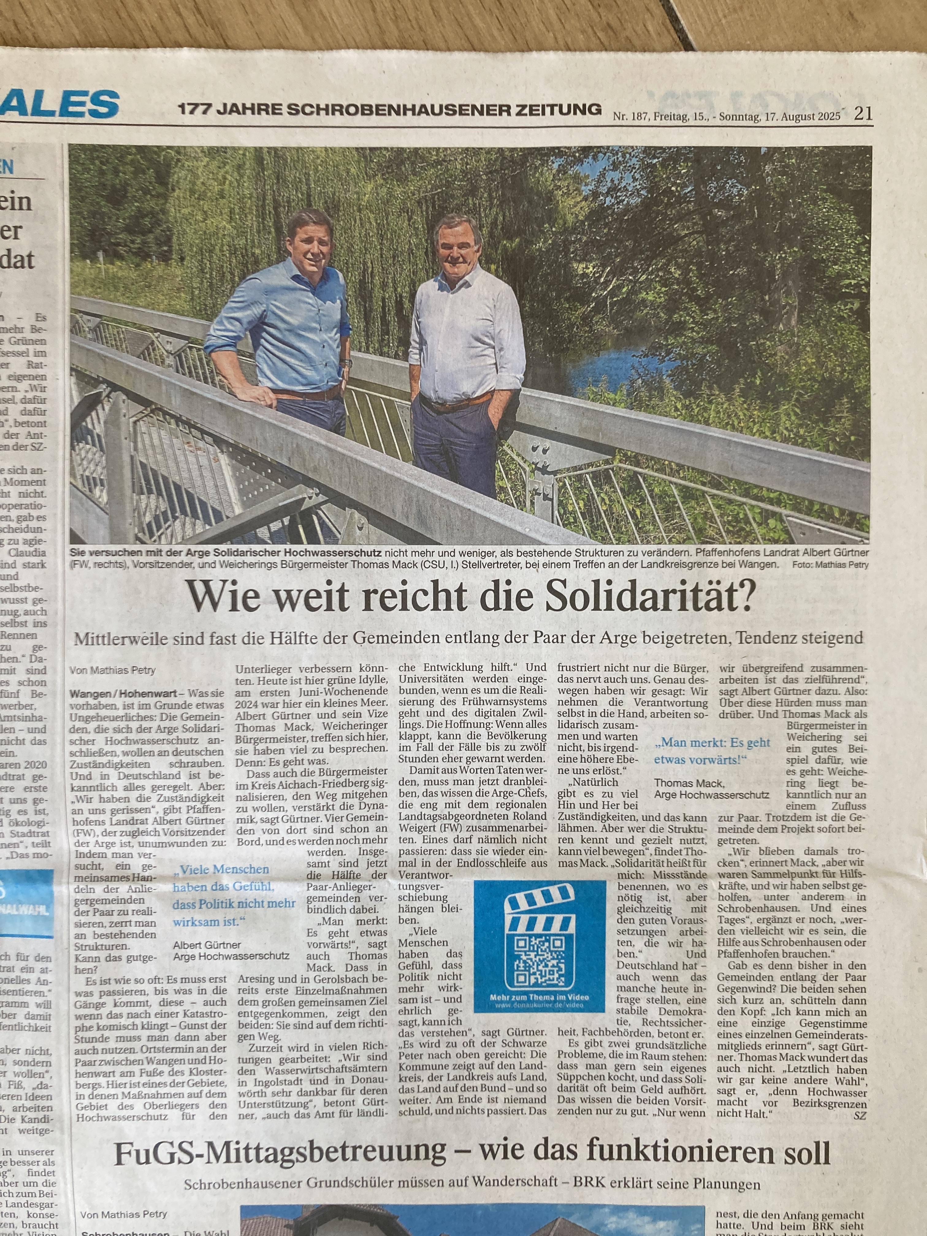 Wir als ehrenamtlich aktive Bürger und Bürgerinnen hier in Schrobenhausen freuen uns sehr, dass auch auf kommunaler politischer Ebene für den dringend benötigten Hochwasserschutz etwas in Bewegung gekommen ist.
