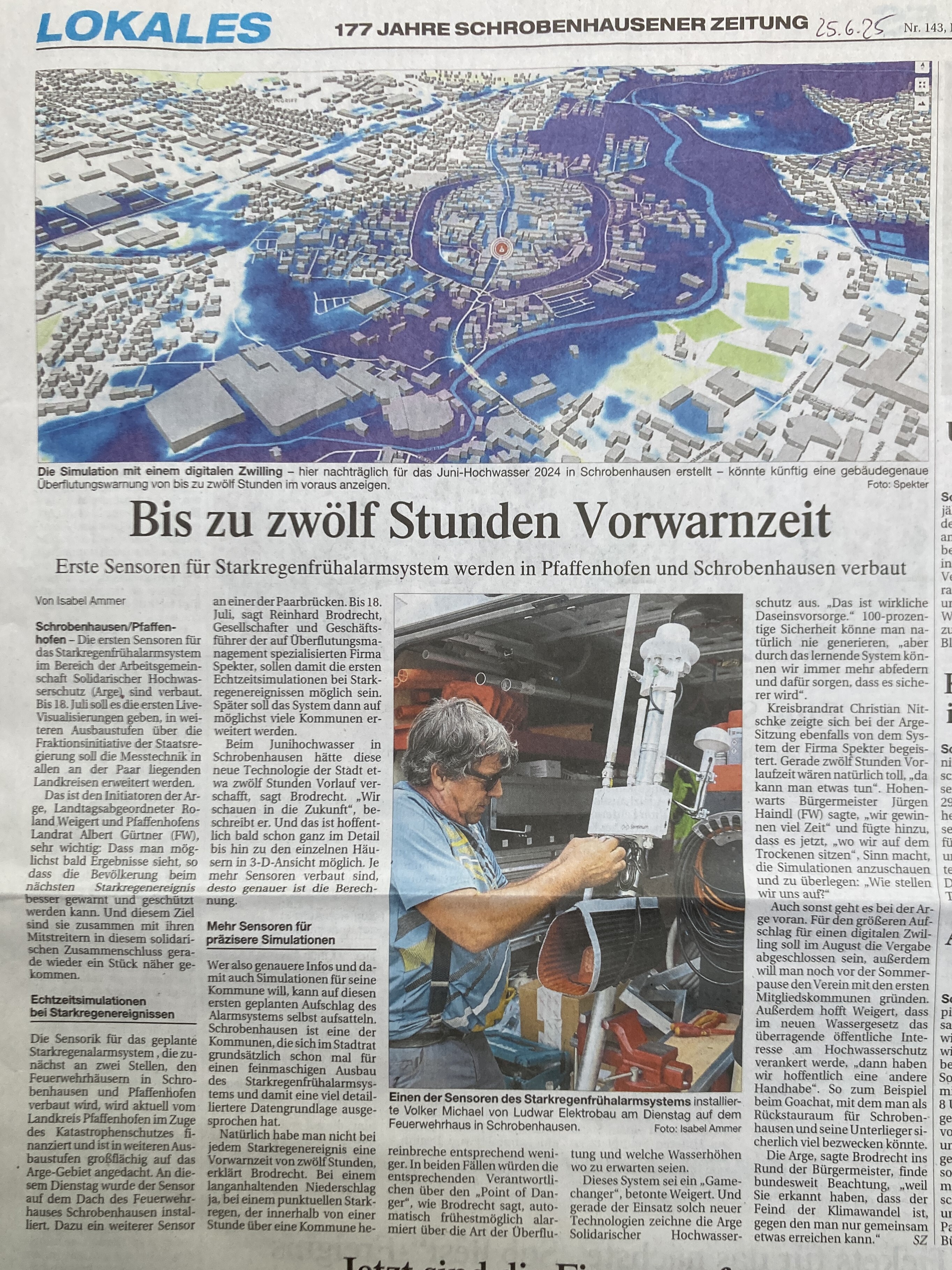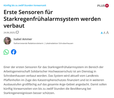 Die Arbeitsgemeinschaft (Arge) Solidarischer Hochwasserschutz an der Paar hat nun endlich mit einer ersten konkreten Massnahme begonnen, die Menschen früher warnen zu können.