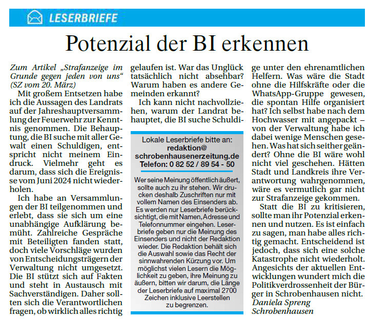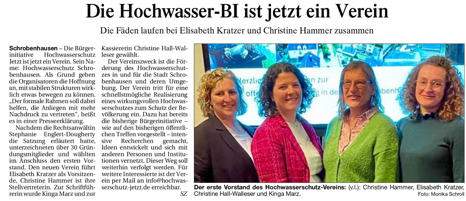 Und aus dem gleichen Grund wie bei uns in Schrobenhausen, hatte sich direkt nach dem schlimmen Hochwasser im Juni 2024 eine Bürgerinitiative gegründet mit dem gleichen Namen: Hochwasserschutz jetzt!