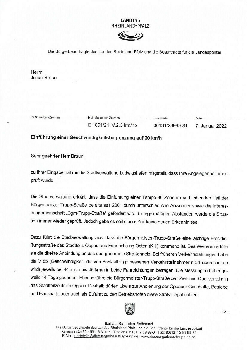 Heute jedoch, erhielt Ich ein Schreiben vom 07.01.2022, in dem eine Stellungnahme der Stadtverwaltung Ludwigshafen am Rhein an die Bürgerbeauftragte abgedruckt war.
