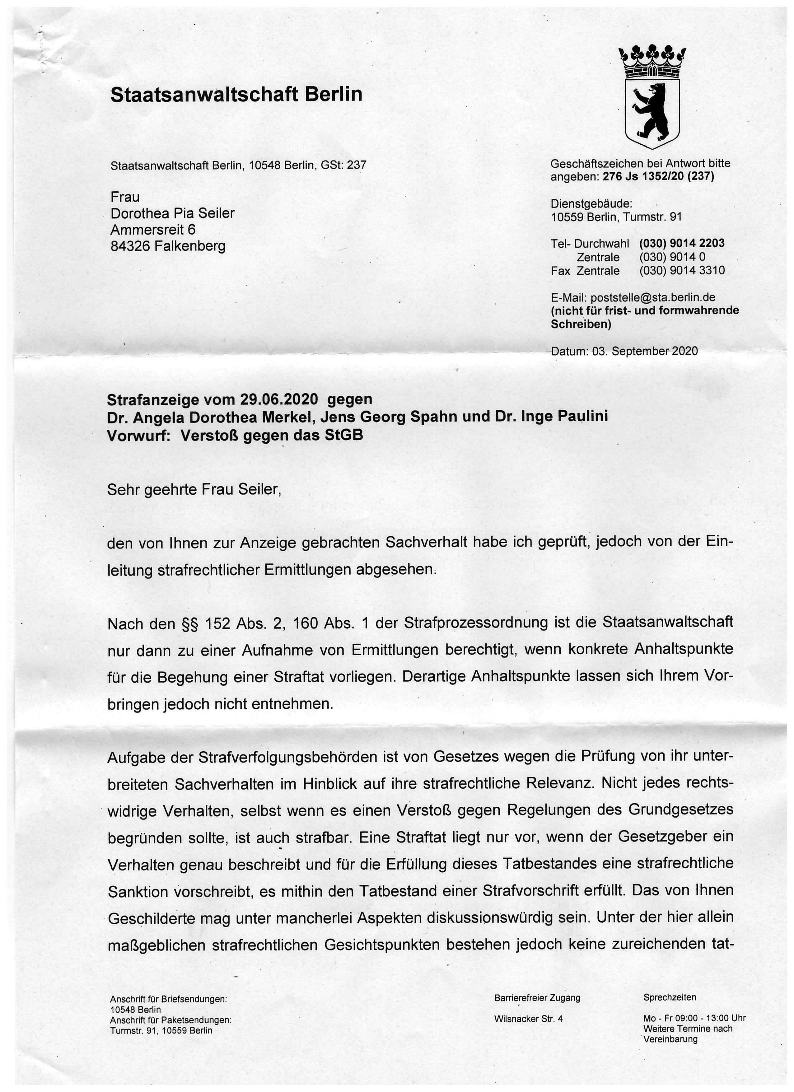 Dann zur Antwort der Staatsanwaltschaft habe ich wie folgt geantwortet: Aktenzeichen: 276 Js 1352/20 237