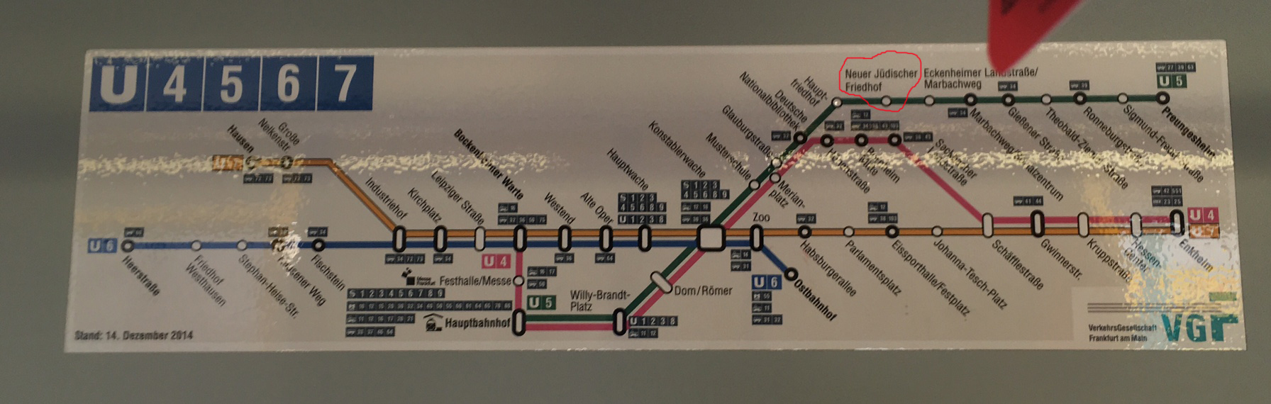 In der U Bahn ist die Haltestelle noch verzeichnet. Das heißt, wenn man sich nicht genau auskennt und dem Plan glaubt, erlebt man eine böse Überraschung: Man denkt, in der nächsten steige ich aus, und dann stellt man fest, die Bahn fährt einfach an dem Jüdischen Friedhof vorbei und hält nicht!