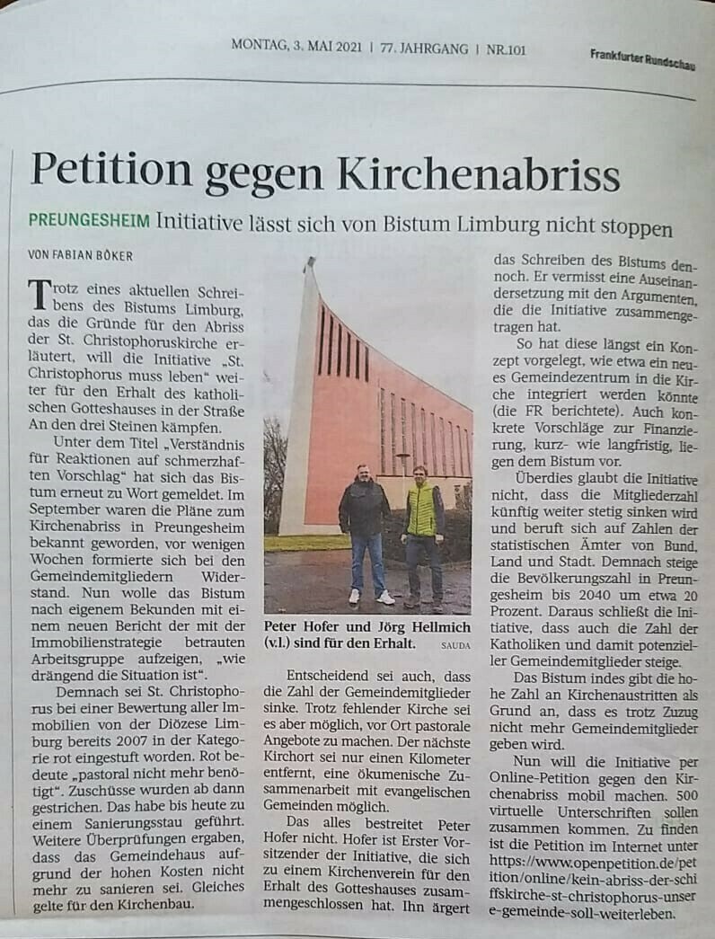 www.fr.de/frankfurt/preungesheim-ort904337/petition-gegen-abriss-der-sankt-christophoruskirche-90484780.html?fbclid=IwAR21yuViNWxnwqD1TXNrhHjTplKSRl8BY-J6lW2g2wZUQ6D30nNiqHlevHg