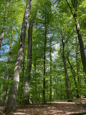 Foto: Urwaldartiger Rotbuchen-Traubeneichen-Bestand im Wildnisgebiet Stechlin im Norden Brandenburgs Anfang Mai 2025 bei einer Begehung der Waldinitiative Berlin.