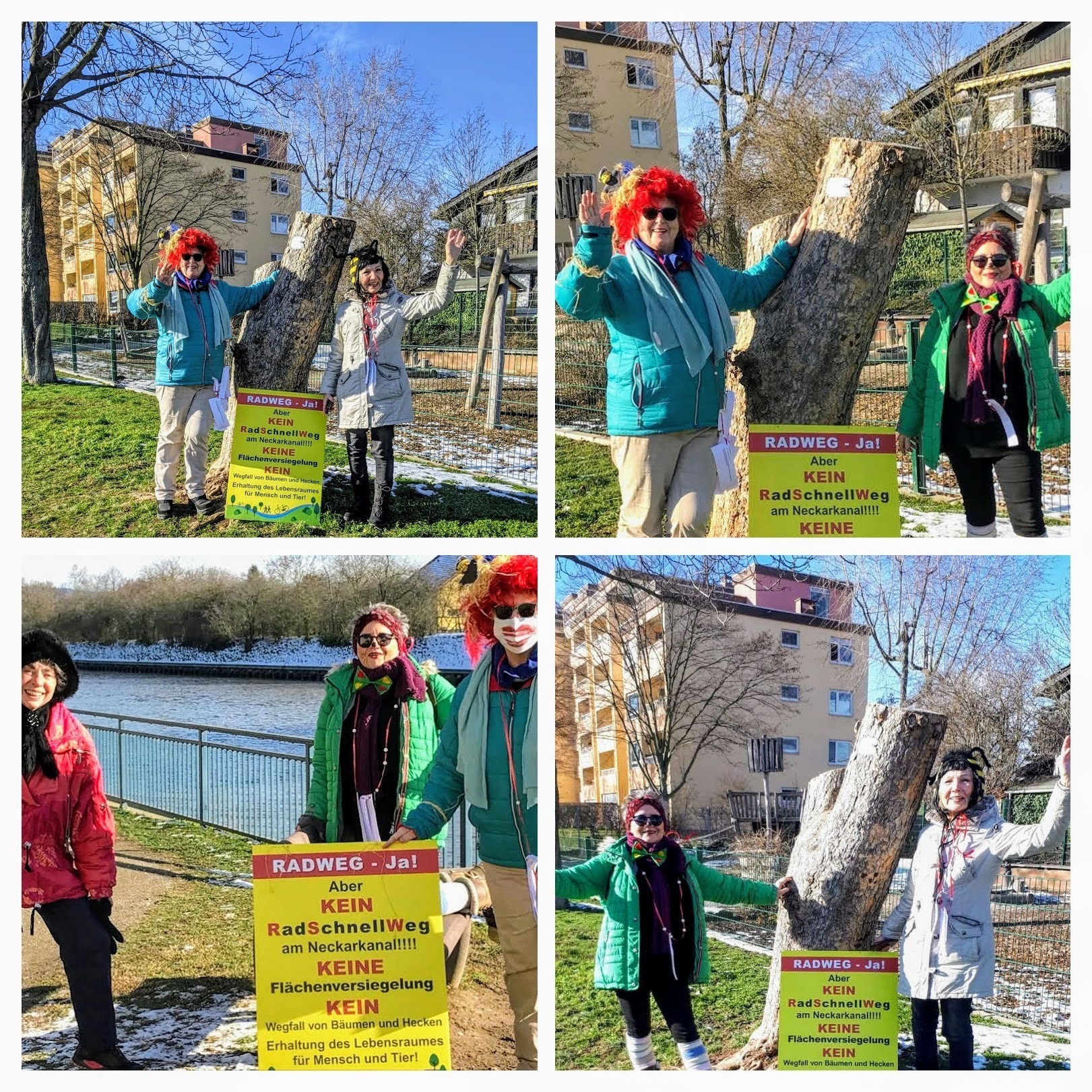 Am Faschingssonntag unternahmen Vertreterinnen der BI einen närrischen, Corona- konformen Spaziergang entlang der geplanten Strecke des RSW am Neckarkanal, um zu informieren und mit SpaziergängerInnen ins Gespräch zu kommen. Bei strahlendem Sonnenschein konnten wir interessante Gespräche führen.