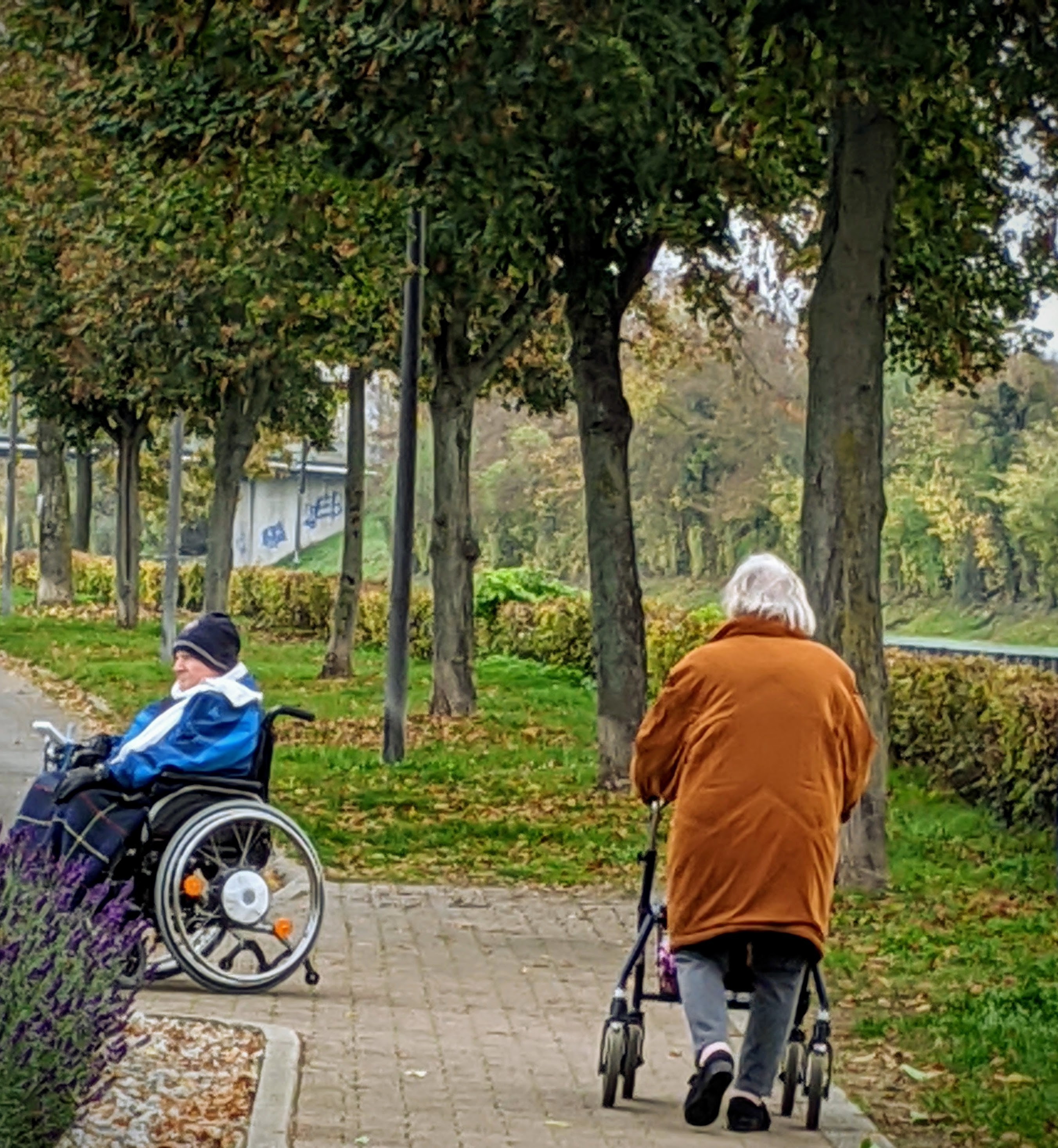 mit Rollatoren und/oder mit Rollstühlen, Ausflugsziel vom Kindergarten
