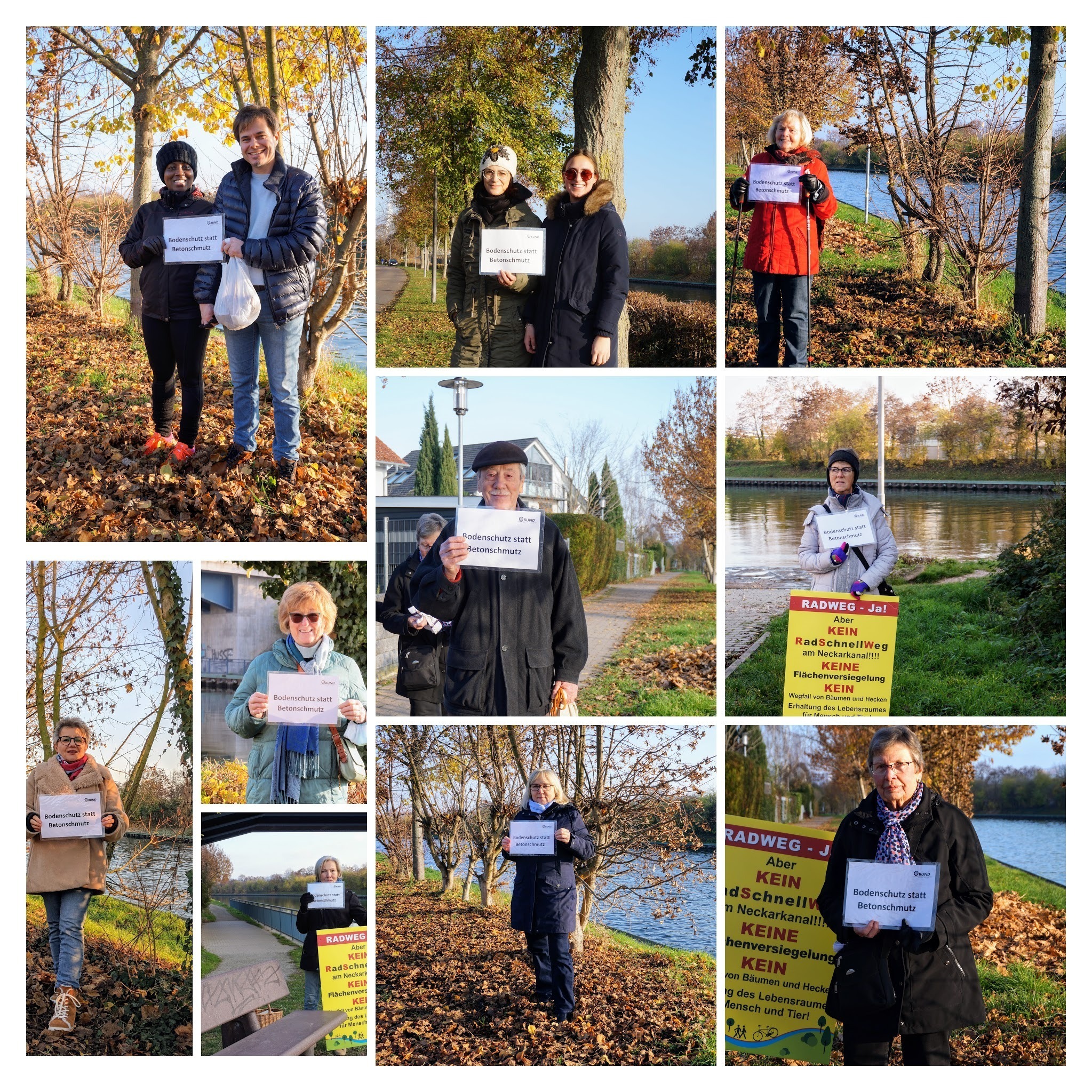Eine Vertreterin der Bürgerinitiative „Kein RadSCHNELLweg am Neckarkanal- es gibt sinnvolle Alternativen“ ist zusammen mit der Gemeinderätin Frau Nick-Toma/ Bündnis90 DIE GRÜNEN die geplante Radschnellweg-Trasse am Neckarkanal zu Beginn des neuen Jahres abgelaufen.