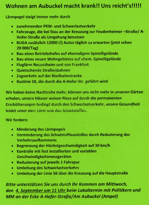 Bitte unterschreiben Sie die Petition online und gerne auch auf den bald in den Feudenheimer Geschäften ausliegenden Unterschriftenlisten. Und bitte weitersagen.
