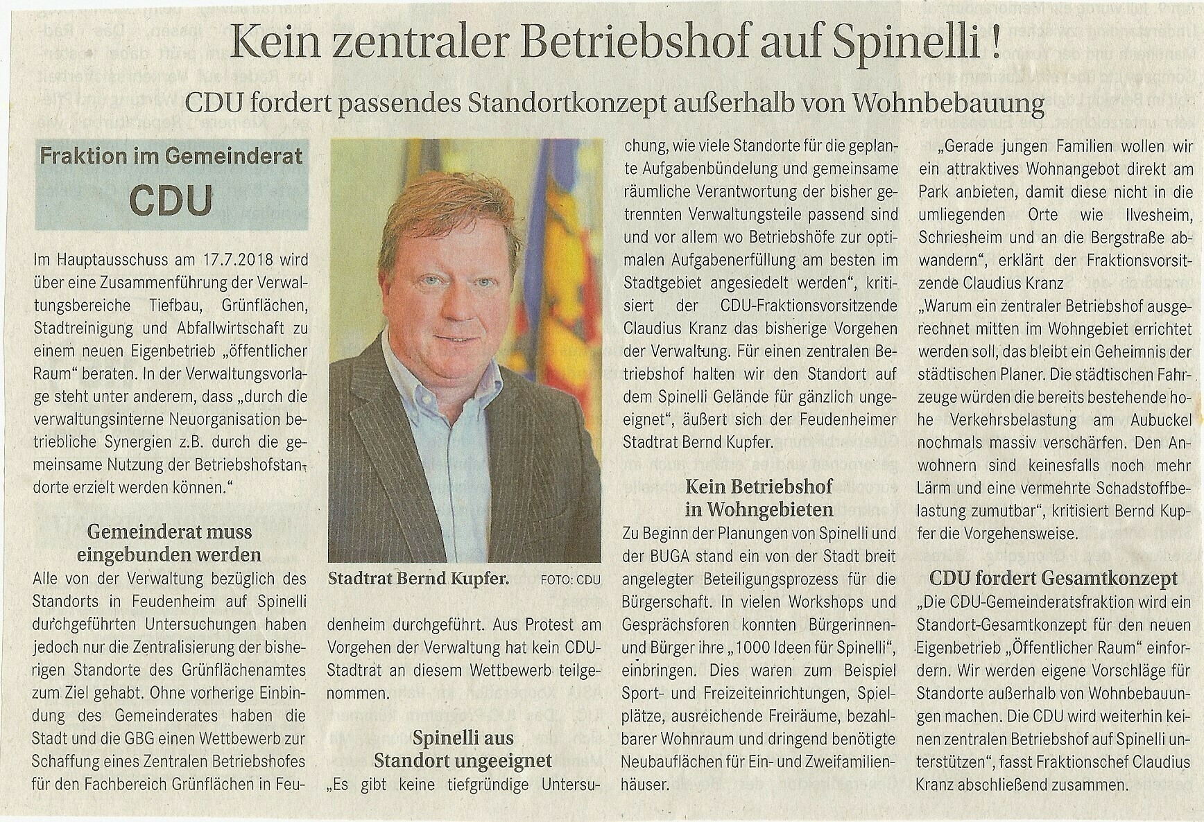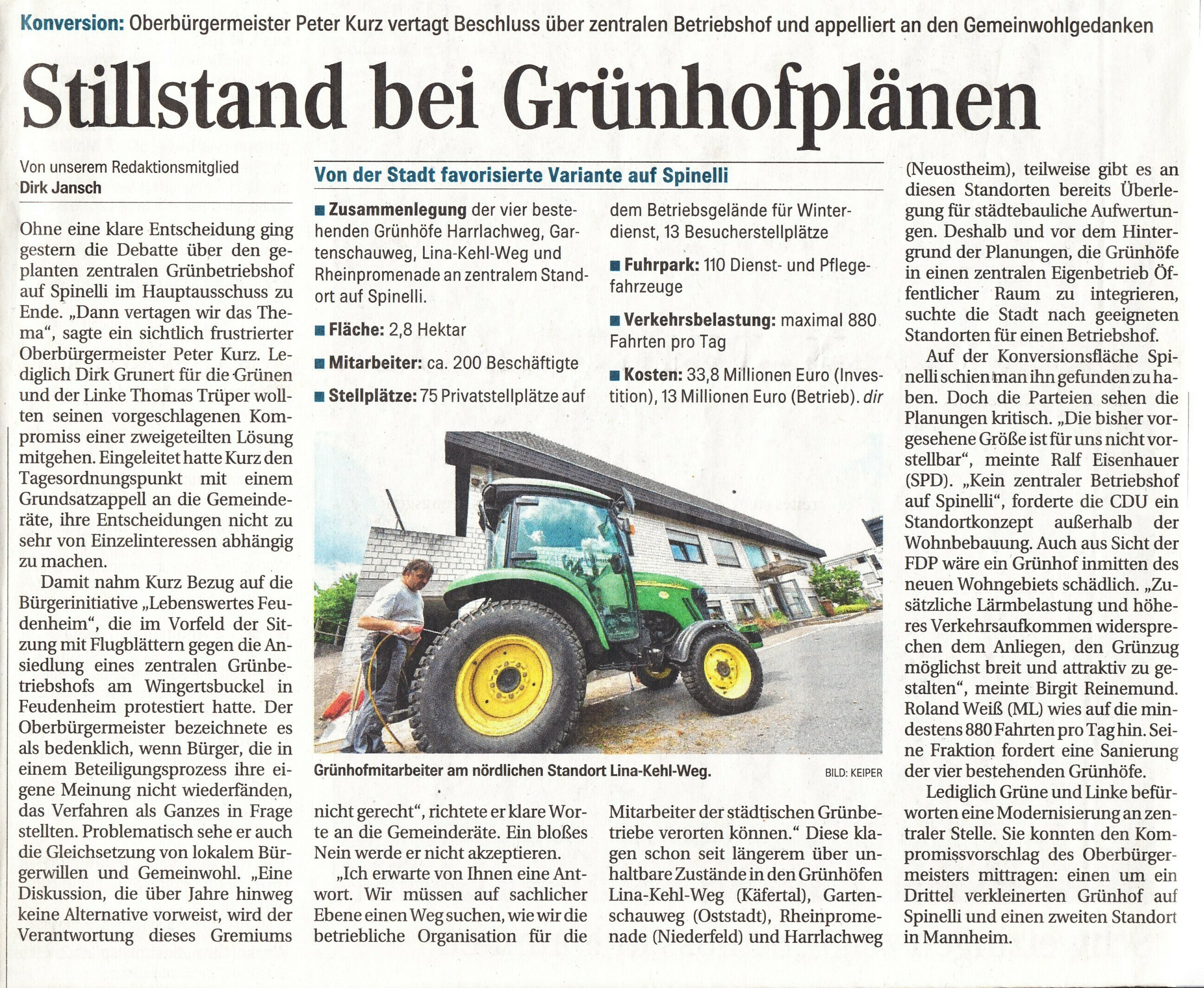 der Betriebshof wäre immer noch zentral in Feudenheim auf Spinelli