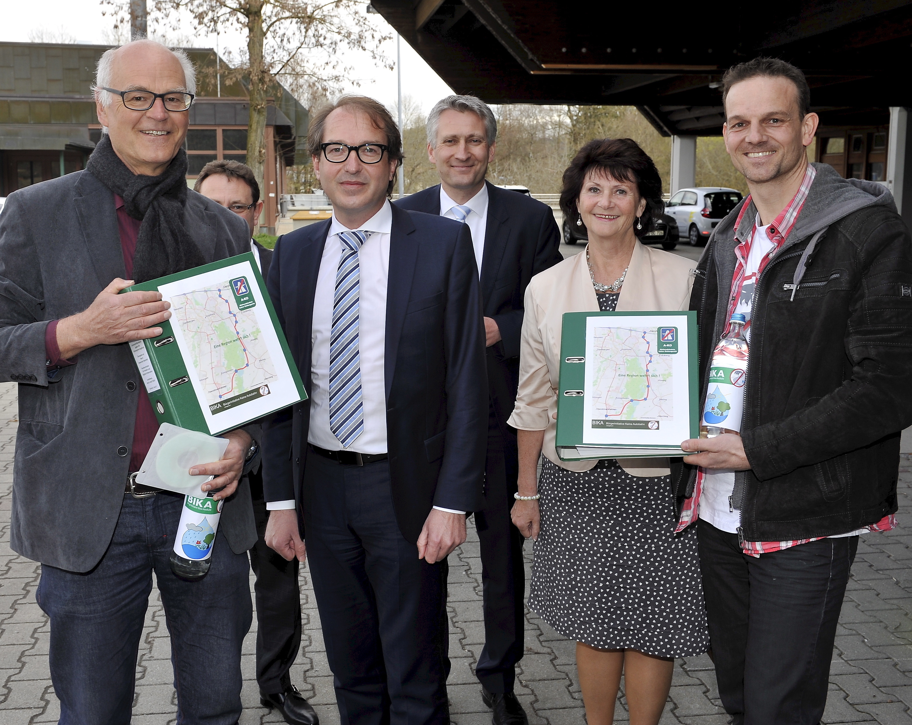 Heute haben wir insgeamt 11.000 Unterschriften gegen die Osttangente an den Verkehrsminister Alexander Dobrindt übergeben. Darunter auch diese Petition. Von links nach rechts: Wolfhard von Thienen, Alexander Dobrindt, Hansjörg Durz (MdB), Barbara Jaser (2. Bgm. Königsbrunn), Andreas Nieß. Wir diskutierten etwa eine halbe Stunde mit dem Minister. Er stellte allerdings klar, dass er damit rechnet, dass die Osttangente auch nach der Öffentlichkeitsbeteiligung im vordringlichen Bedarf des Bundesverkehrswegeplanes verbleibt.