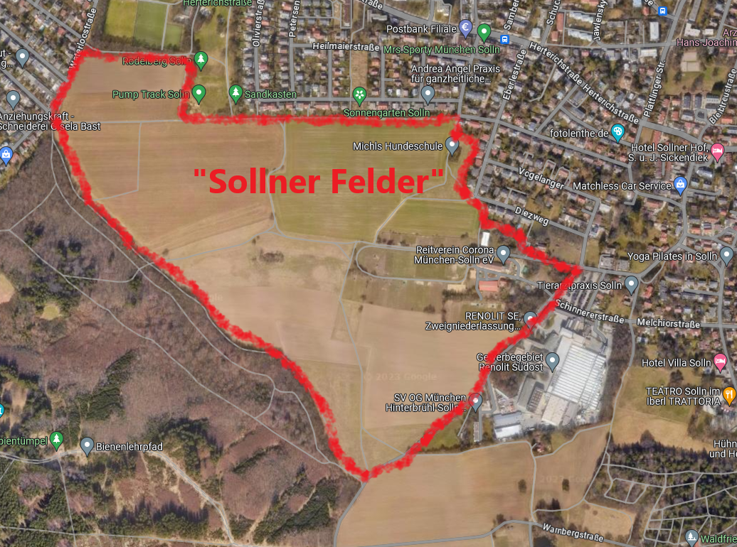 „Der BN spricht sich deshalb gegen jegliche Bebauung der sogenannten Sollner Felder aus und wirbt für den Erhalt und die ökologische Weiterentwicklung, auch im Rahmen einer umfassenden Parkmeile für die Bevölkerung.“