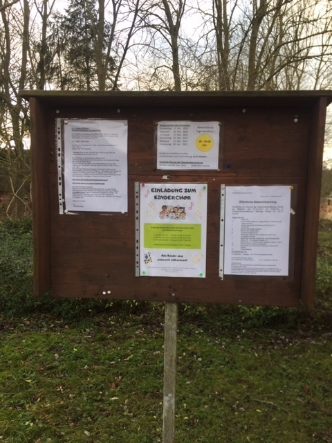 Das Schwarze Brett verrät neben Einladung zu Kinderchor und Bürgermeistersprechstunde: