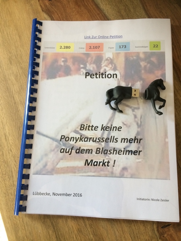 Last but not least möchte ich Euch noch eine Petition aus unserem Nachbarort Espelkamp ans Herz legen, wo man auch gegen die Tierquälerei Ponykarussell vorgehen möchte: