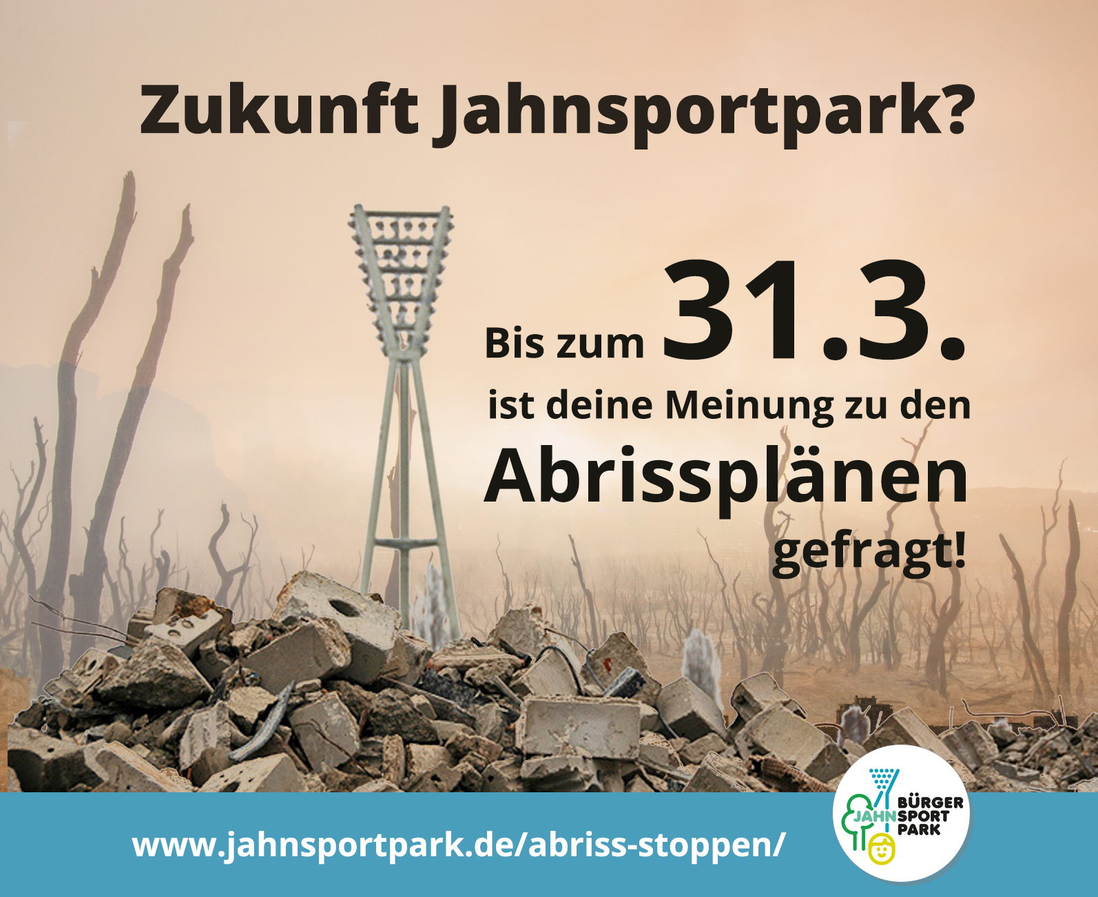 ES IST WOMÖGLICH DIE LETZTE MÖGLICHKEIT, AUF DIE GESTALTUNG DES JAHN-SPORTPARKS EINFLUSS ZU NEHMEN – WIR BRAUCHEN ALSO EURE UNTERSTÜTZUNG!