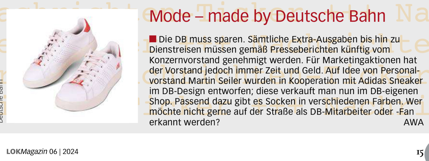 Stattdessen: Sneaker im DB-Design. Man ist tatsächlich sprachlos.