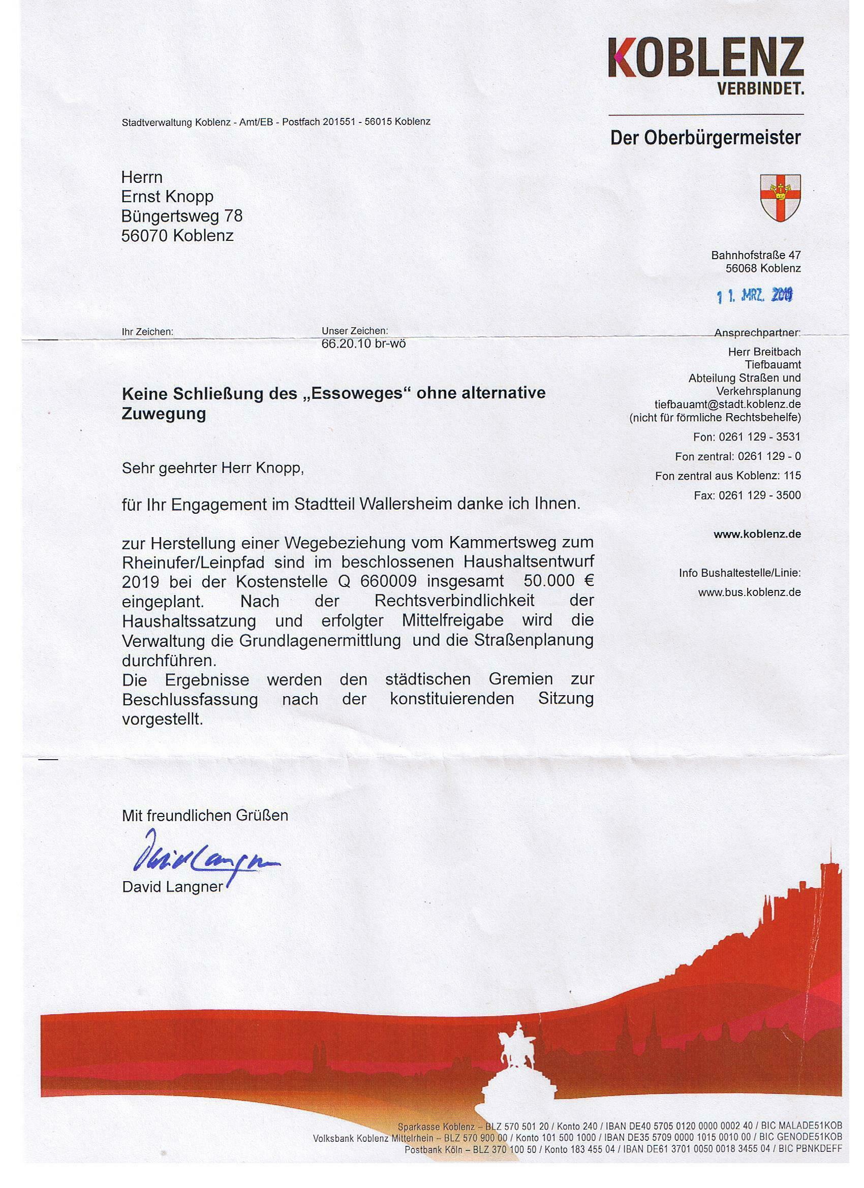 Nachricht zu einer abgeschlossenen Petition 13. 03. 2019 12:51 Liebe Unterstützerinnen und Unterstützer der Petition, anbei das Bestätigungsschreiben des Herrn Oberbürgermeisters, David Langner, zur Umsetzung der Maßnahme. Herzliche Grüße, Ernst Knopp