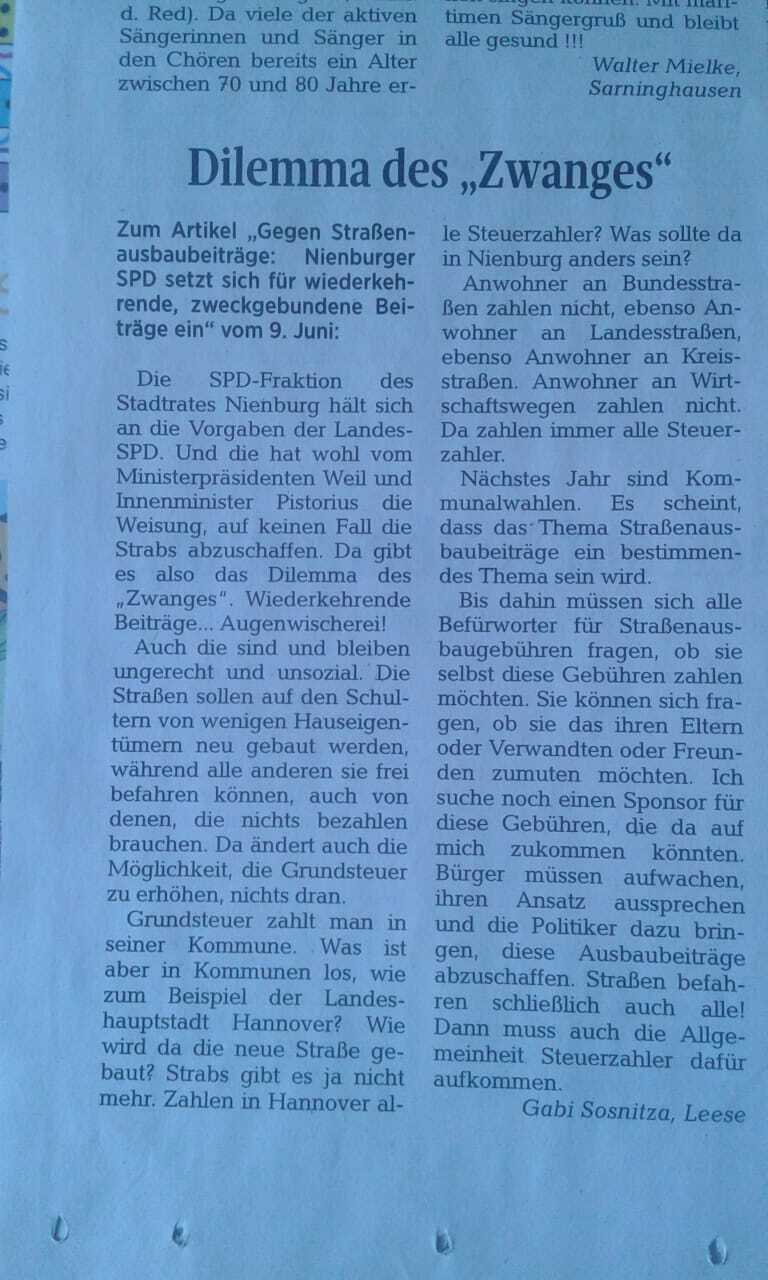 Keine Straßenausbaubeiträge in Nienburg