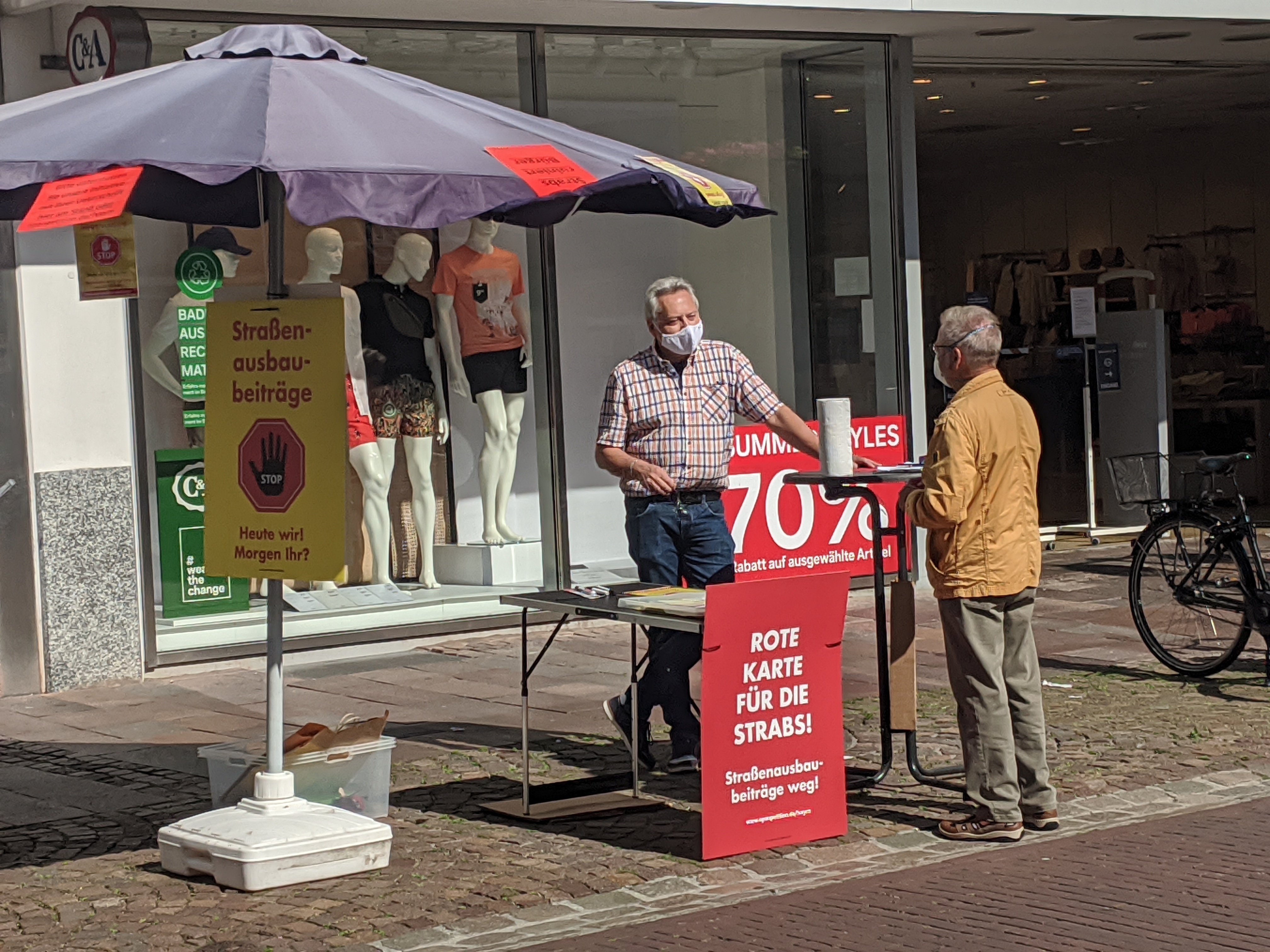 am 20.06.2020 haben wir in der Zeit 09:30 bis 13 Uhr fleißig Unterschriften gesammelt. Das Feedback war Positiv und wir möchten uns noch einmal bei allen UnterstützerInnen bedanken. Am 27.06.2020 werden wir wieder auf dem Wochenmarkt sein und weiterhin gegen die Strabs kämpfen.