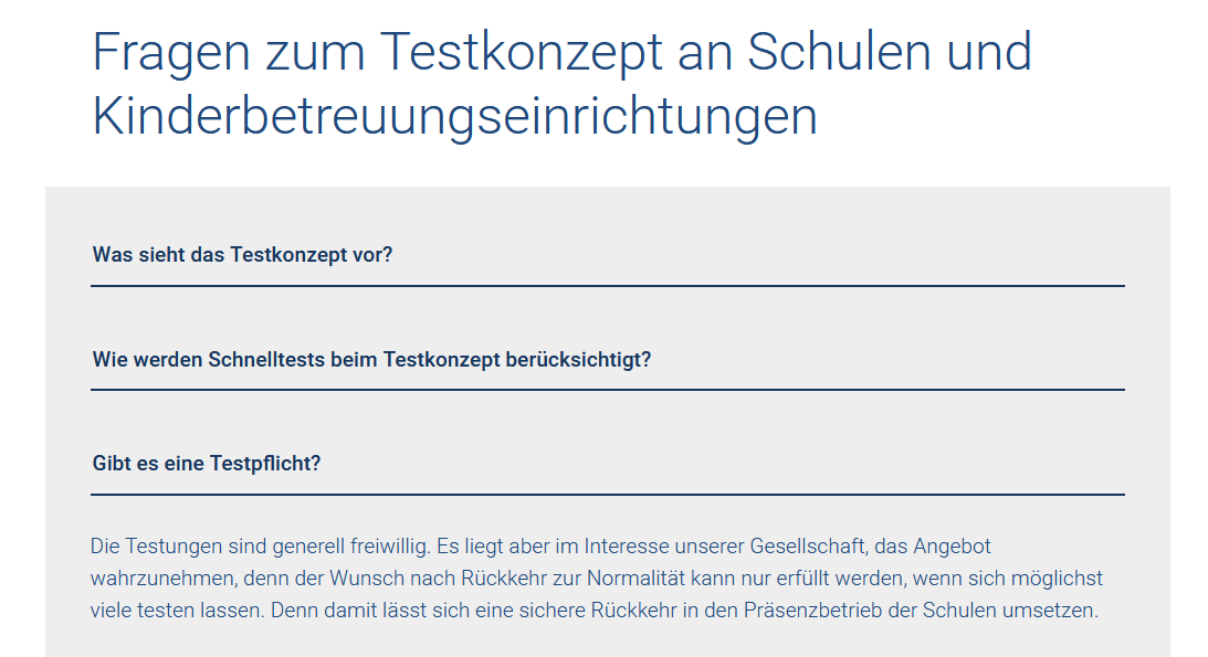 Weitere interessante Links zu dem thema Testpflicht und Maßnahmen: