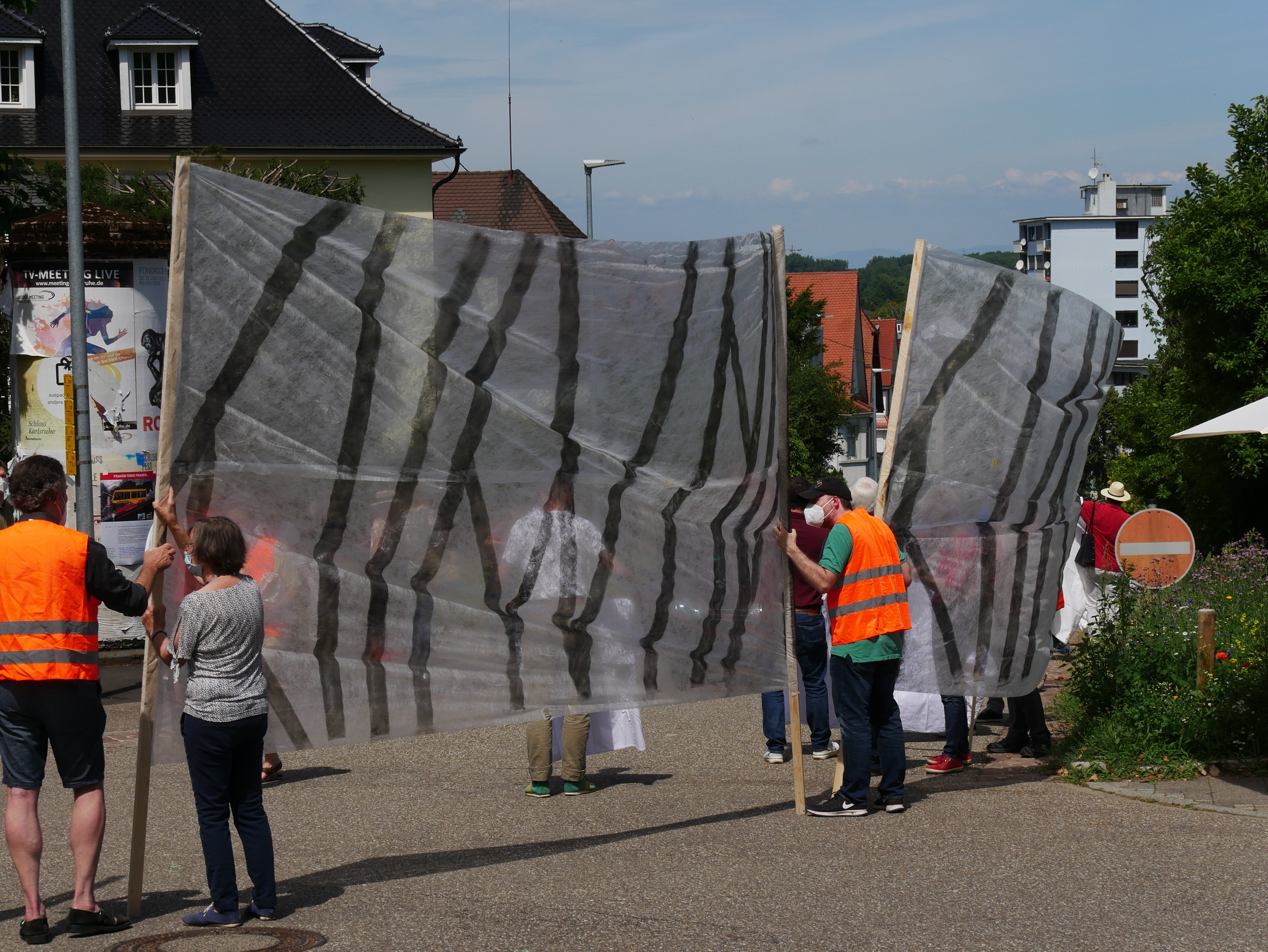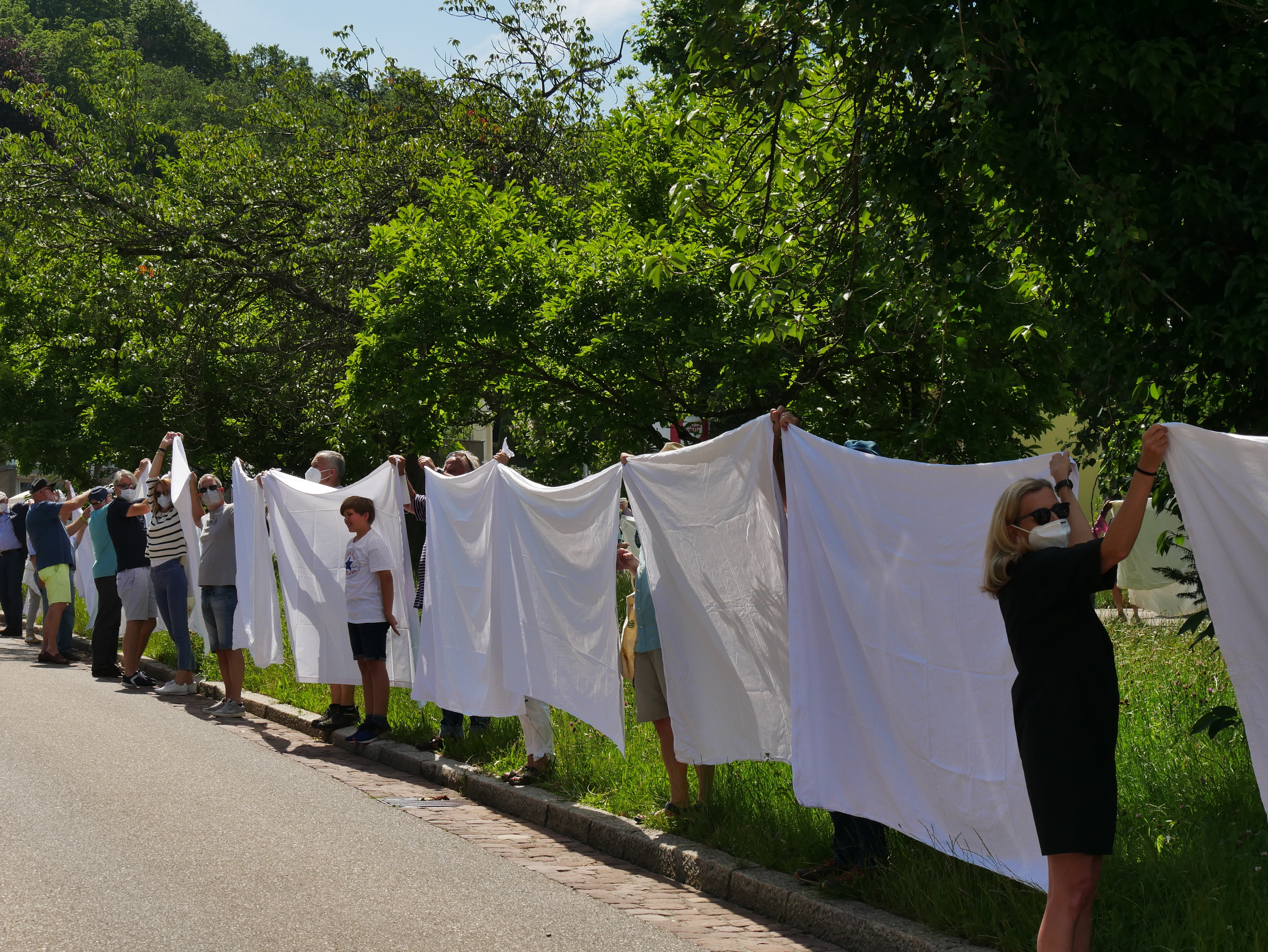 bitte bringen Sie zu dem Aktionstag am 03.07.2021 ein großes weißes Tuch (Leintuch o.ä.) zur Symbolisierung des 180 cm hohen Zauns und eine medizinische Maske mit (Auflage des Ordnungsamts).
