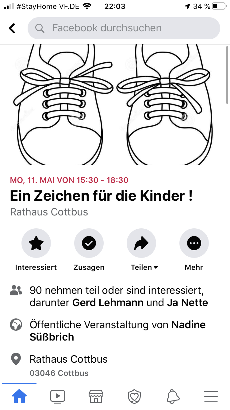 Kommt am Montag, dem 11.05.2020, in der Zeit von 15.30 Uhr bis maximal 18.30 Uhr vorbei, stellt ein paar Kinderschuhe hin und geht ! KEINE Demonstration, Keine Kundgebung oder Ähnliches .... nur ein Zeichen!!