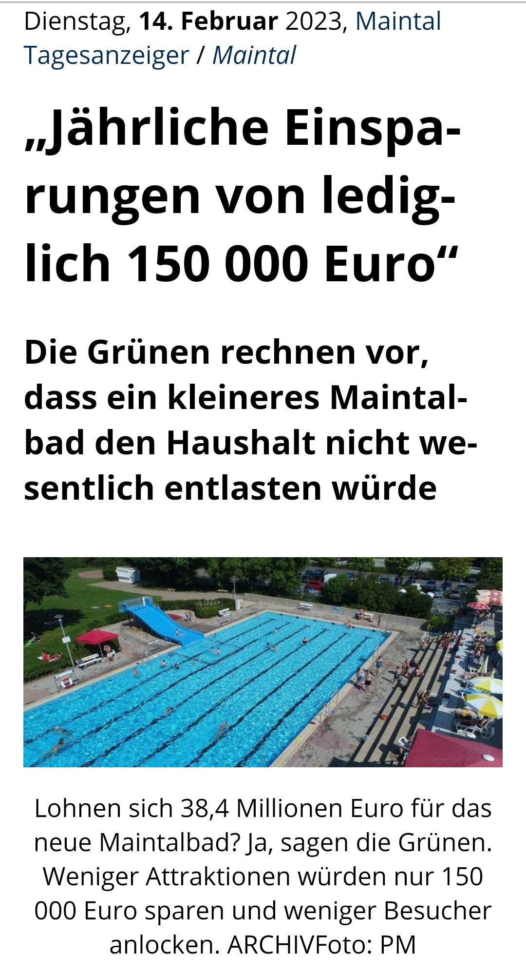 Im Maintaler Tagesanzeiger vom 14.2. teilen die Maintaler Grünen ihre Sicht auf die "nackten Zahlen" rund ums Maintalbad.