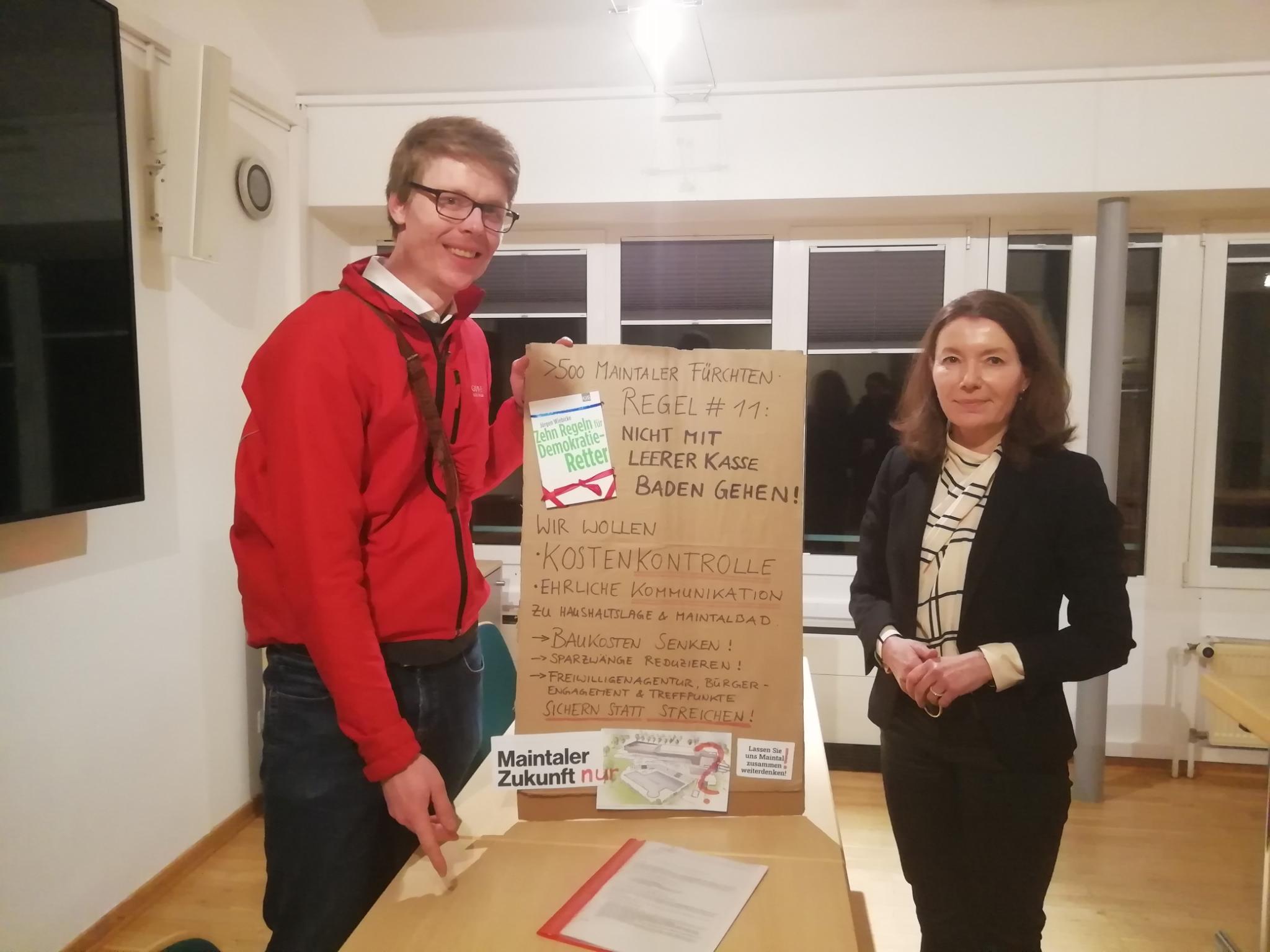 am kommenden Mittwoch, den 8. März, ist es soweit: Vor der Sitzung des Bauausschusses, bei dem auch die nächsten Planungsschritte zum Maintalbad auf der Tagesordnung stehen, können wir unsere Stimmen gegen ein zu teures Neubauprojekt an Bürgermeisterin Monika Böttcher übergeben. Die Sitzung startet um 18:30 Uhr im Sitzungssaal des Rathauses Maintal, Klosterhofstraße 4-6 in Hochstadt.
