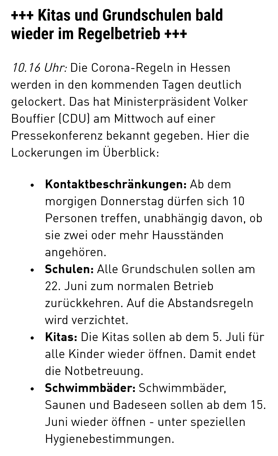 gestern Vormittag hat die hessische Landesregierung auf einer Pressekonferenz die neuen Lockerungen vorgetragen.