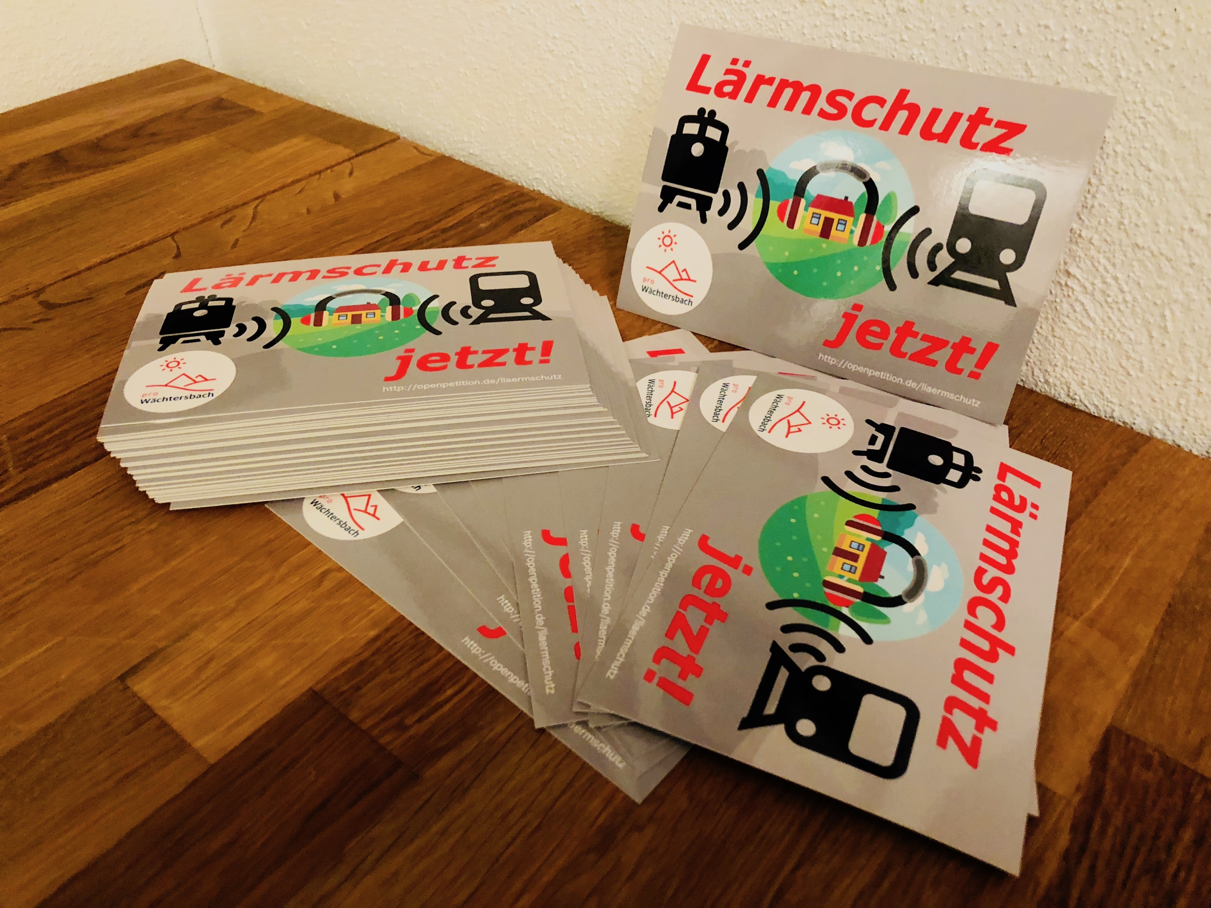 Die nächsten Schritte sind nun parallel dazu "offline": Flyer, Unterschriftenzettel, Abreißzettel und Postkarten sind zu verteilen . Wer uns hier unterstützen möchte: Sehr gerne! Wir stellen unser Material (hochaufgelöste Bilder, Texte wie z.B. Offener Brief etc...) sehr gerne zur Verfügung, einfach an kontakt@prowaechtersbach.de eine kurze Email senden.
