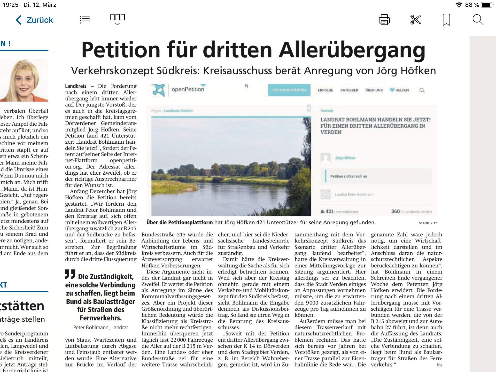 Heute aktuell in der örtlichen Presse und als Rückmeldung zum Stand der Petition, beiliegend der Zeitungsbericht aus der Verden Aller Zeitung.