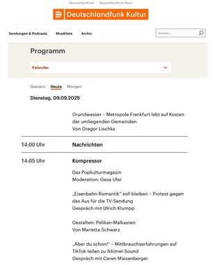 Direkt zu Deutschlandradio Kultur: www.deutschlandfunkkultur.de/kompressor-100.html