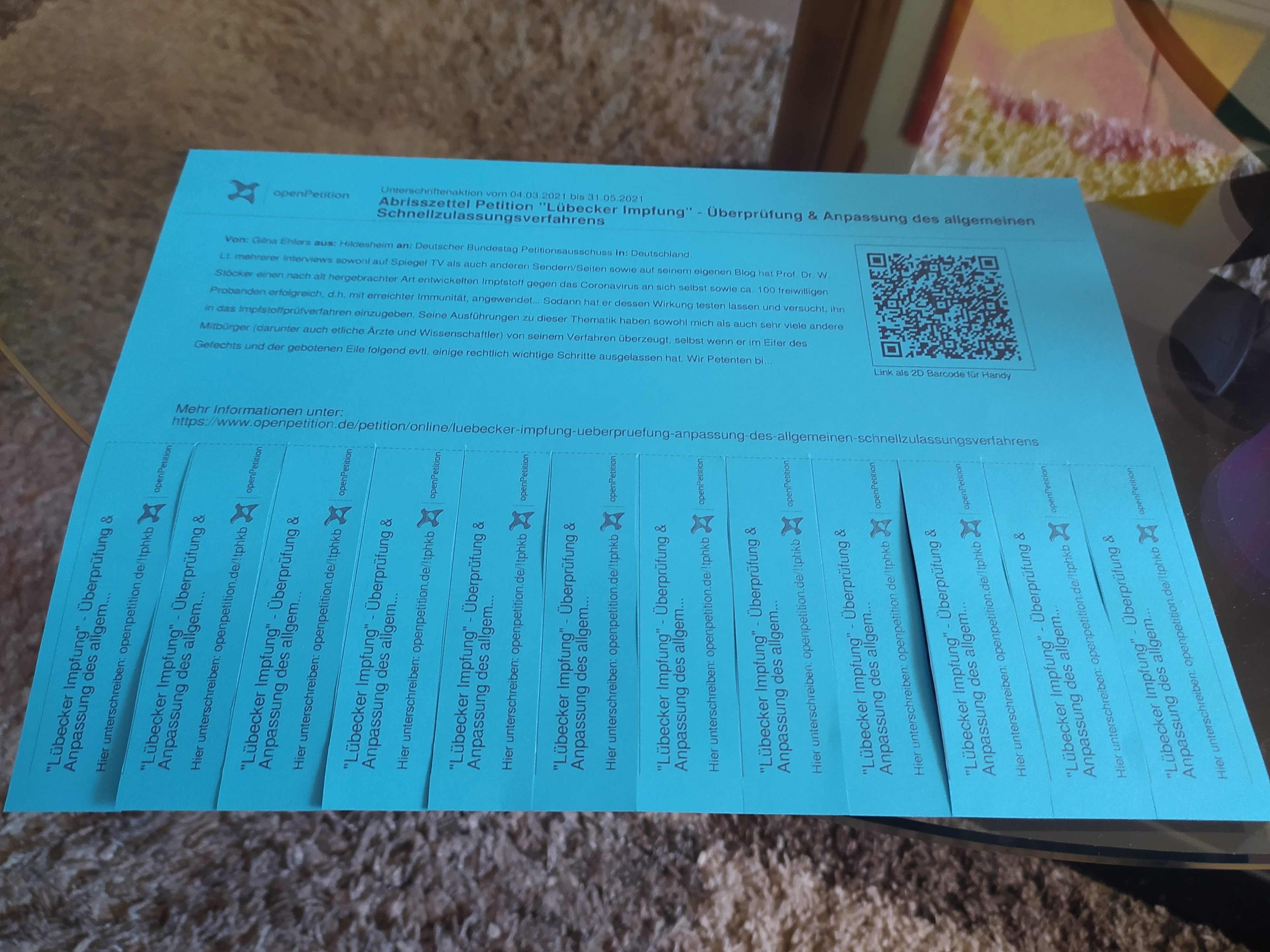 Wenn Ihr weiterhin unterstützen wollt, sendet weiterhin gut gefüllte Listen und auch gern noch andere konstruktive Ideen zur effektiven Verbreitung unserer Petition.